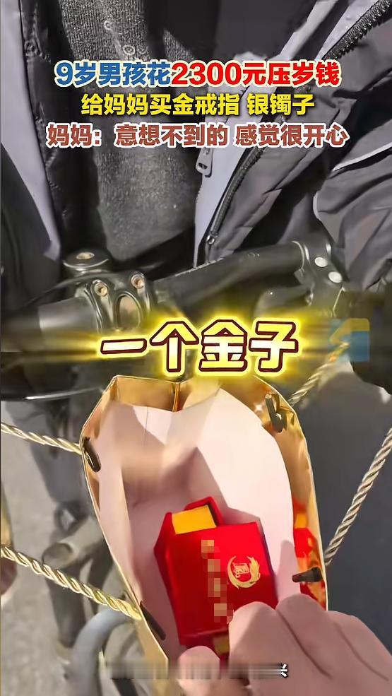 “这儿子没白养!”近日,浙江嘉兴,一男孩偷偷出门,用3000元压岁钱给妈妈买金戒指和银手镯,还特意带了一杯妈妈爱喝的奶茶,当他送给妈妈时,一句“给妈妈花钱我一点也不心疼”,让妈妈瞬间感动!网友:从小就是暖男! 嘉兴二月的寒气还没散尽,在这个春节刚过的日子里,金店柜台前出现了一个略显违和的小小身影。他是9岁的小宇,一个本该在玩具柜台挪不动步的孩子,此刻却攥着刚刚攒下的三千块钱压岁钱,在这堆成年人的社交货币面前,踮起脚尖。 他不是来凑热闹的,他的目的非常明确:一枚金戒指,一只银手镯,那是他长期以来从母亲姚女士日常的眼神中捕捉到的心愿。 店员可能很少见到这样的“大客户”。对于大多数同龄的孩子来说,三千元意味着一整年的新款模型,或是游戏世界里的顶配装备,但在小宇的账本里,这笔钱只有唯一的去向。 他没有丝毫犹豫,付清了这笔对于普通劳动家庭而言并不算小数目的巨款。走出首饰店后,这个男孩并没有立刻回家,而是轻车熟路地绕了一段路,来到一家奶茶店。 他点了一杯妈妈平时最喜欢的口味,拎着包装袋穿过街道。那些金灿灿、亮闪闪的贵重物品被他护在怀里,但他似乎觉得,只有加上这杯还冒着热气的饮品,这份仪式感才算完整。回到家,当这套组合拳式的心意毫无预兆地摆在姚女士面前时,这位见惯了生活磨砺的女性瞬间愣住了。 在姚女士试戴的过程中,出现了一个微小的遗憾:戒指的尺寸明显小了一号。按照金银流通的逻辑,这是一件买错了的商品,但在情感的维度里,这种由于孩子对成人尺寸缺乏认知而产生的“不完美”,反而成了最真实的注脚。 它无声地宣告着:这是一场完全属于一个九岁孩子的、独立且秘密的奔赴。“给妈妈花钱,我一点也不心疼。”这句话从小宇嘴里说出来时,空气仿佛凝固了几秒。 姚女士眼眶湿润,不仅仅是因为那三千元的克重,更是因为她在这一刻看清了自己在儿子心里的分量。这种“倾其所有”的纯粹,往往是成年人最难给予的——孩子给出的不是节余,而是他的全部。 外界对这段故事的解读往往会停留在“孝顺”二字,但若深究其根源,这更像是一场关于爱的镜像反射。在一个单亲家庭的背景下,作为工厂普通劳动者的母亲,平日里如何用汗水缝补生活,孩子其实全看在眼里。 爱这种东西,从来不是单向的施舍,而是长久生活在同一个屋檐下,你为我挡风,我就努力为你折射阳光的本能。网友们感慨“这儿子没白养”,这评价里透着一种朴素的宽慰。 其实,这种懂事并非从天而降,它根植于那些无数个母亲为生计奔波、孩子默默收起个人欲望的日夜。小宇不仅仅记住了一枚戒指的成色,他还记住了母亲劳累时对一杯甜味奶茶的渴望,这种“共情能力”才是这份礼物里最贵的成分。 生活的重担有时会让人的感知变得麻木,但一个九岁孩子的突击行动,像一根轻柔的羽毛,挑动了那根深藏在琐碎生活里的琴弦。 那枚尺寸偏小的戒指,虽然勒在手指上有些局促,却结结实实地套住了母亲心底最柔软的地方。这种情感的价值,远比黄金在二级市场上的波动要坚挺得多,因为它是一个孩子能给出的、最高规格的敬意。