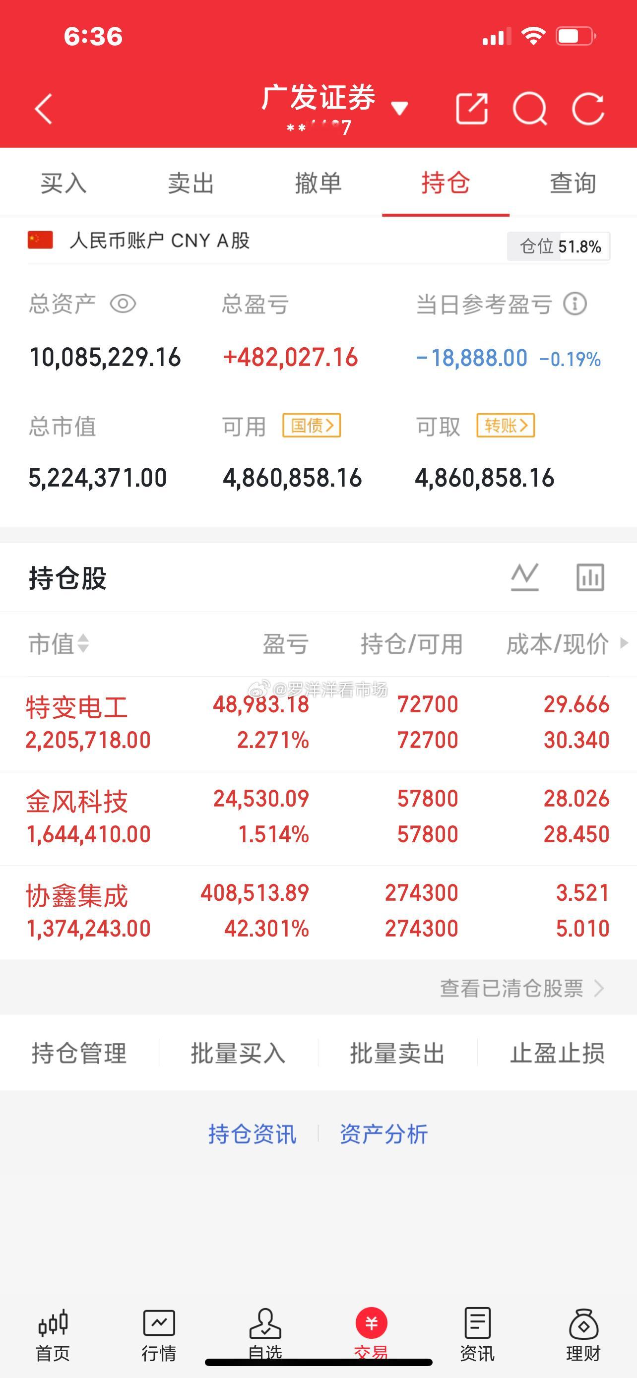 持有:金风科技 002202 特变电工 600089 协鑫集成 002506