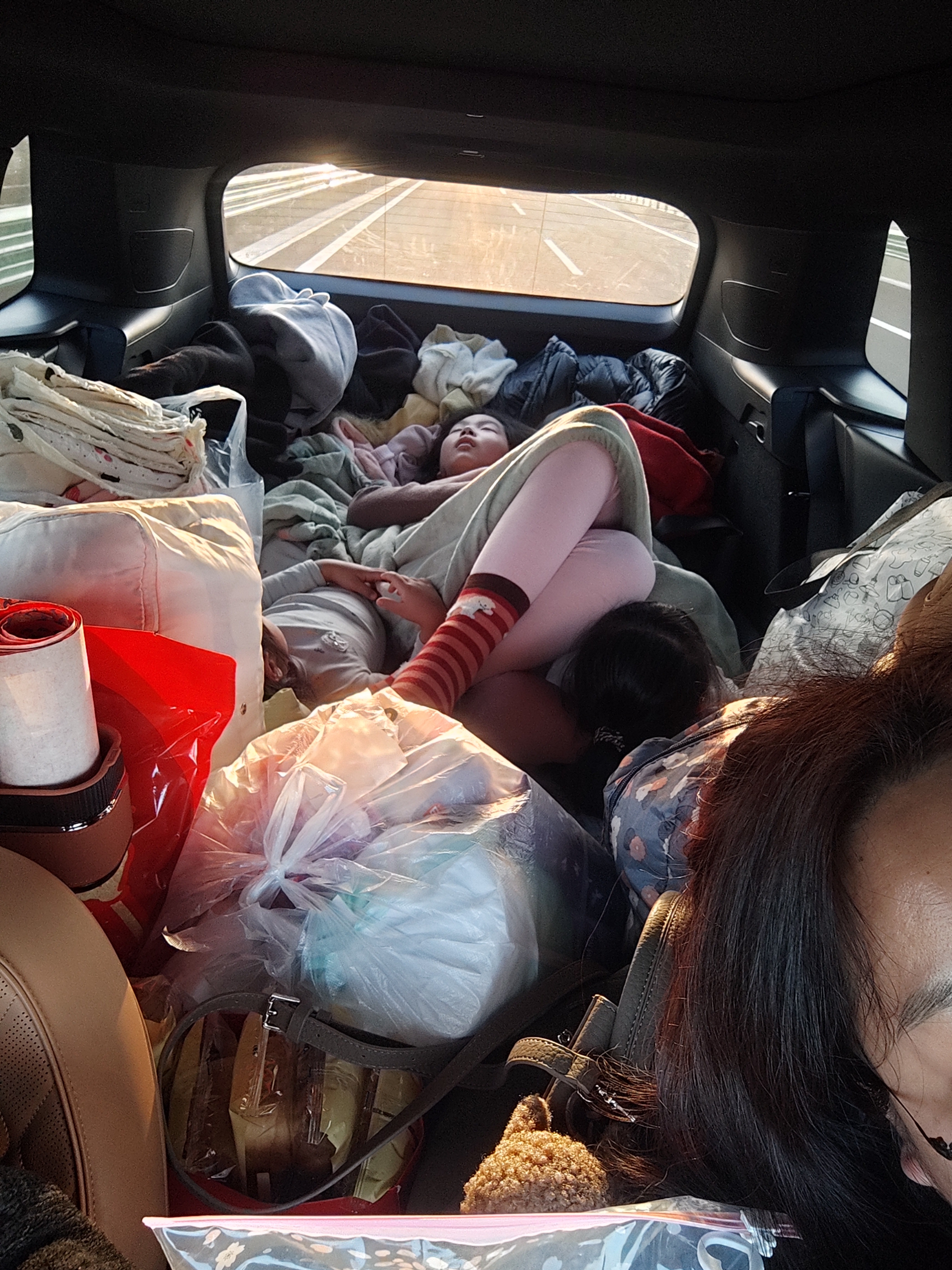 回去过年 2.14情人节,早上四点起床,打算四点半出门的,结果还是到了快五点出门,加满油,一路向西北狂奔,中原打底薄雾覆盖大地,早上的朝阳喷薄而出,走进了后视镜,崽子们安安稳稳的睡到自然醒,到东京服务区吃点午饭儿,再次路过愚公干事业的地方,经过山西的时候总得买点醋,崽子们在垣曲拍照留了纪念,为站中间吵吵闹闹,最后各站一次拍照,该省省该花花,一路畅通,想想还是听媳妇的把国家给的几百块高速福利省了,山西歇了两站,三晋大地的夕阳无限漂亮,跟我大陕北老家不相上下最后跨过黄河,进入陕北老家,延川吃点面条饺子热乎一下,崽子们还非要吃泡面,不吃泡面的旅途是不完美的吃完看看手机pad,大人换后面好好睡两觉,十一点多再出发,十二点多了,准点淮宁湾下,免费杆子通道准时架起开启,南川川道里凉风习习,熟悉的景象扑面而来,裴家湾街道上归家的人络绎不绝,翻山穿沟,就为到达阳塌,孩儿们又已经进入了梦乡,先已回家的姐姐弟弟两家也都睡了,家里的灯是留着、亮着的,抱上就往窑里炕上老爸烧好热乎的被窝里塞,窸窸窣窣之间,老娘醒了爬起来迎接儿孙了,一转眼也是大半年没见了收拾停当,躺下来,看见了记忆中亮晃晃的半圆门窗,不过那时是月光,如今是路灯,那时是纸窗,如今是玻璃,那时身旁是父母姐弟,如今是妻女,近乡情更怯,家总是那么让人心心念念,躺下来那么踏踏实实准备迎接第二天热热闹闹