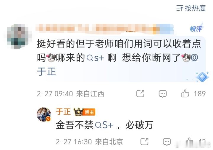 于正新剧宣传博被说低俗于老师:金吾不禁QS+,必破万。网友:金吾不禁你先禁一下自己的宣传语吧,这文案放午夜场都算尺度过大。