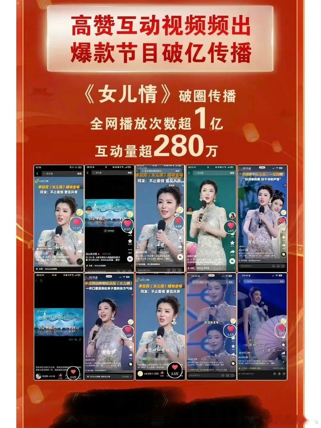 李云霄山东春晚《女儿情》舞台被官方在fb转发,播放量超1亿次,gwy新闻办公室在