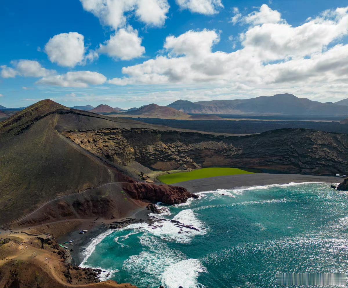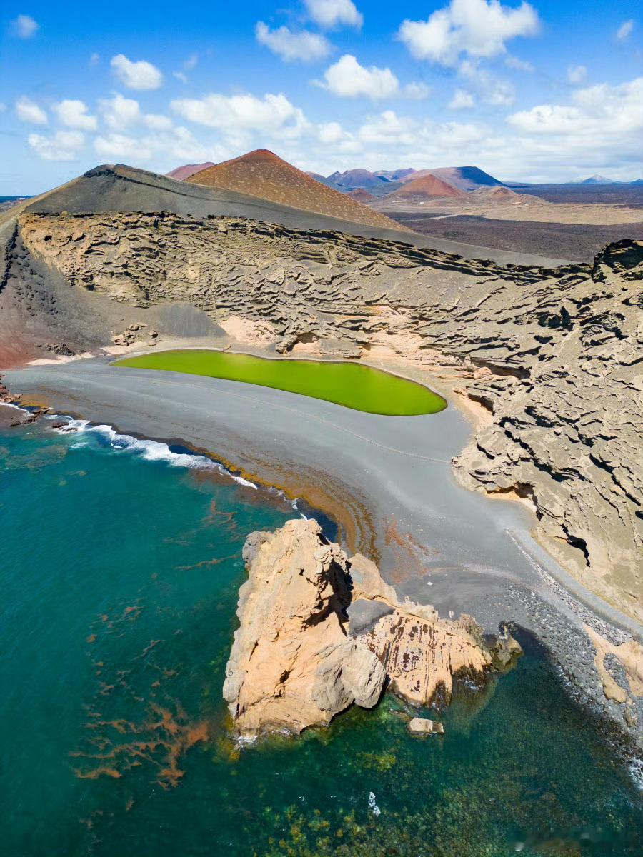 【这里是西班牙】地球的调色盘,遗落在兰萨罗特的绿宝石。在加那利群岛的兰萨罗特岛,一半是深邃静谧的黑色火山沙滩,一半是灿烂如翡翠的神秘泻湖。当墨黑遇见荧光绿,那是冰冷岩浆与鲜活生命的跨时空对话。哪怕是随手一拍,也是大自然最骄傲的配色。源自:访问加那利