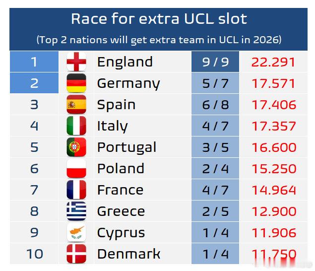 欧冠额外名额之争,英超已经提前锁定了第一,欧洲三级联赛有接近一半的英超球队参加淘汰赛。