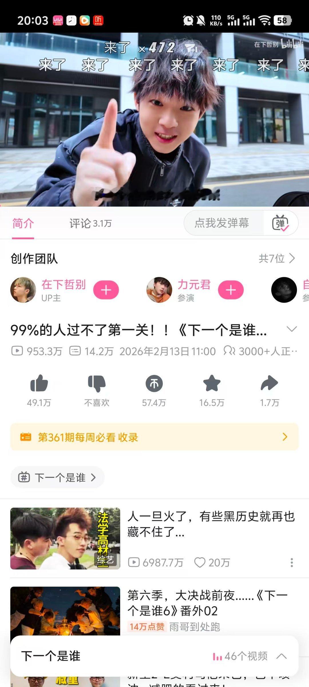 下一个是谁 啊吗粽也是终于等到第六季更新了!等了一天的结局,结果啊吗粽导出视频失败被迫延迟发布。全员在线催更,最后只能先传22秒片段给大家解解馋,但这种接地气的内容,才是这档B站自制综艺最真实的地方。
