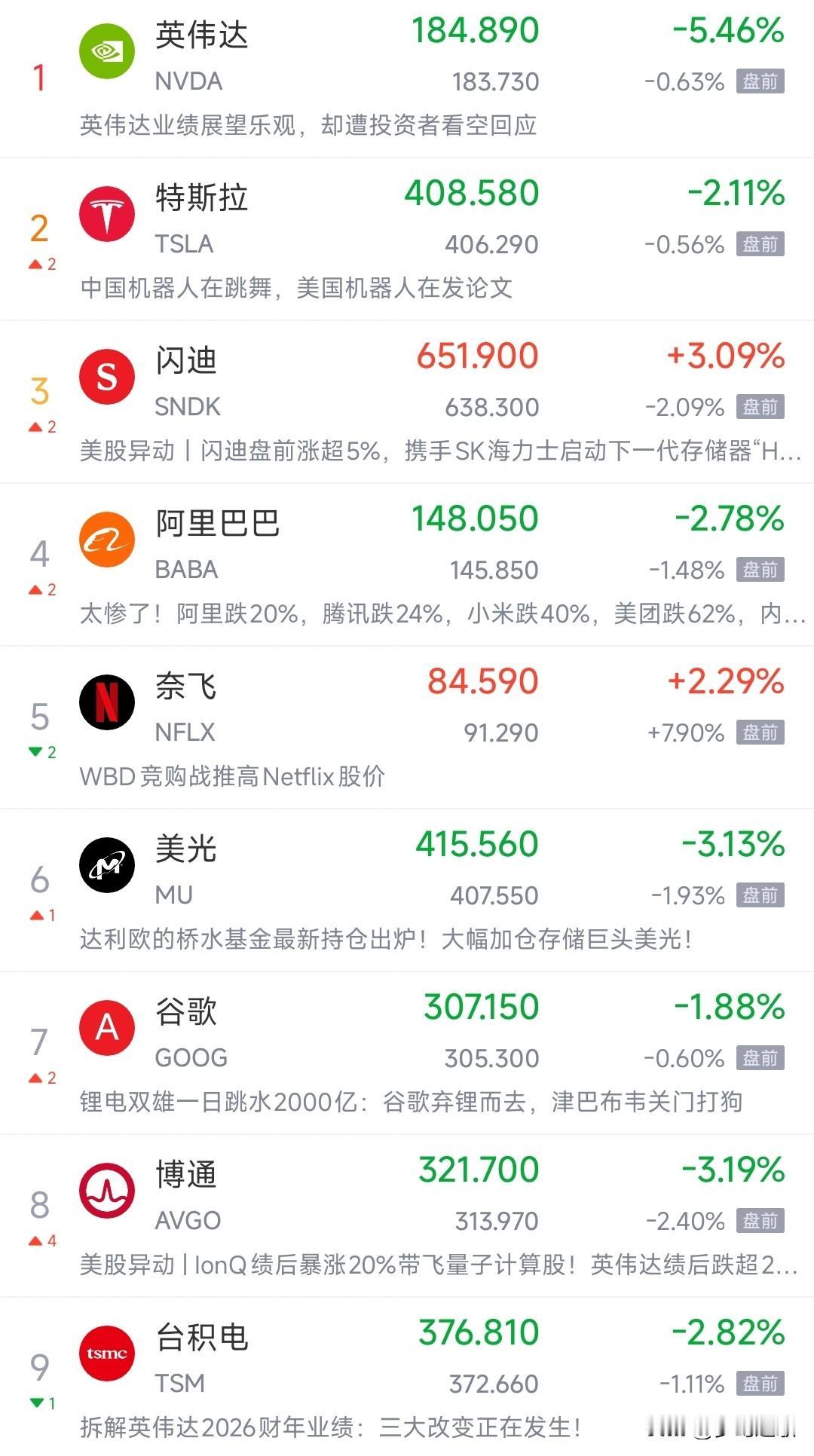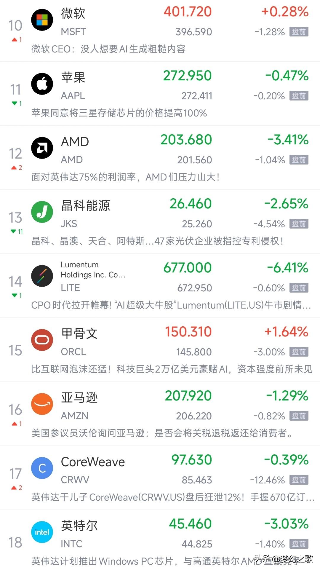 美股这些天又在大跌,今天晚上又是搞事情的节奏 昨晚美股大跌,英伟达暴跌5.46%。今天晚上盘前人工智能概念个股又出现了下跌的情况,英伟达盘前跌0.63%,谷歌盘前跌0.60%,最惨的微软跌1.28%。 华尔街投资大佬们还是对人工智能个股持续盈利有一些担忧,即使英伟达的业绩以及前景都很好,但是投资者们还是不信任现在的人工智能科技股。 美股的连续下跌也会影响到A股,尤其是科技股,对于A股影响最大,如果今天科技股继续大跌,周一A股的科技股就难了。