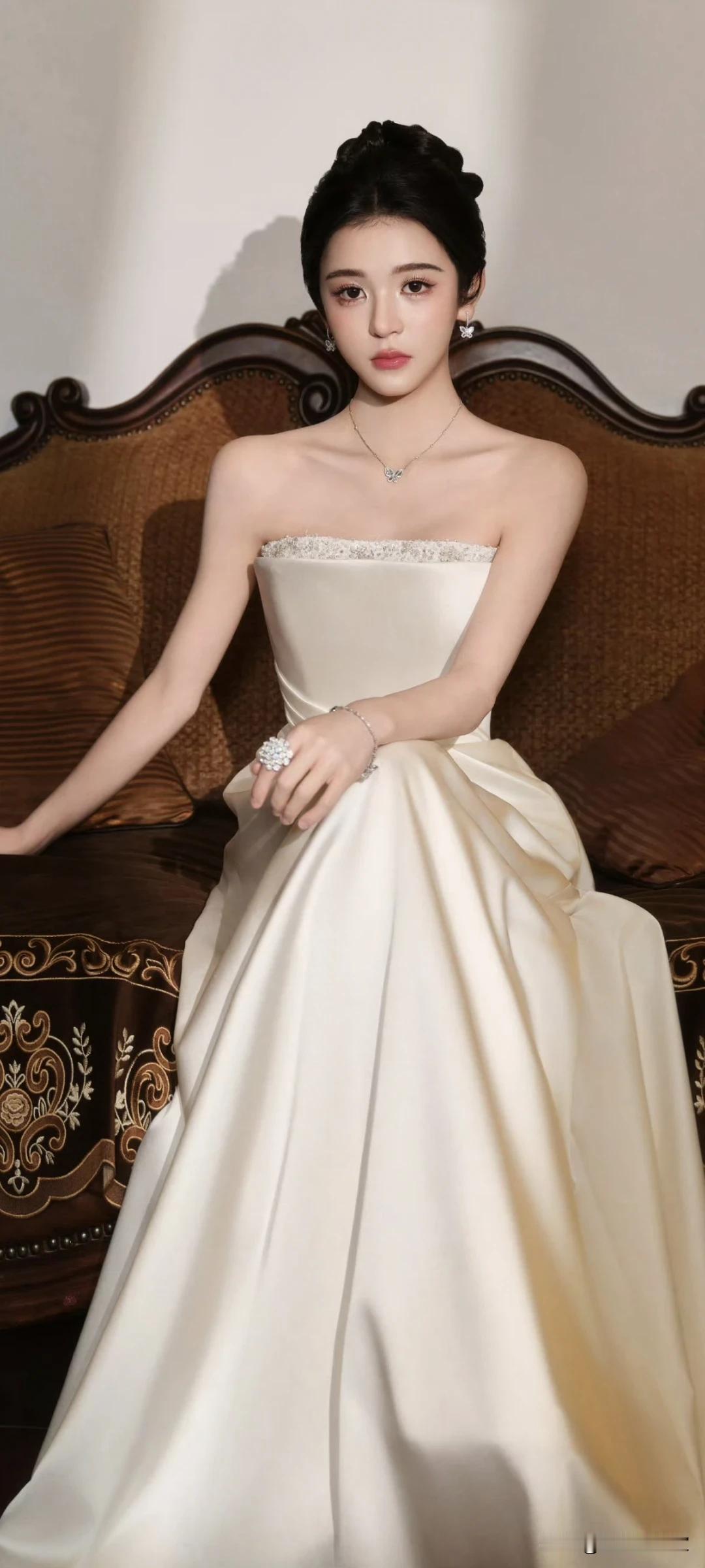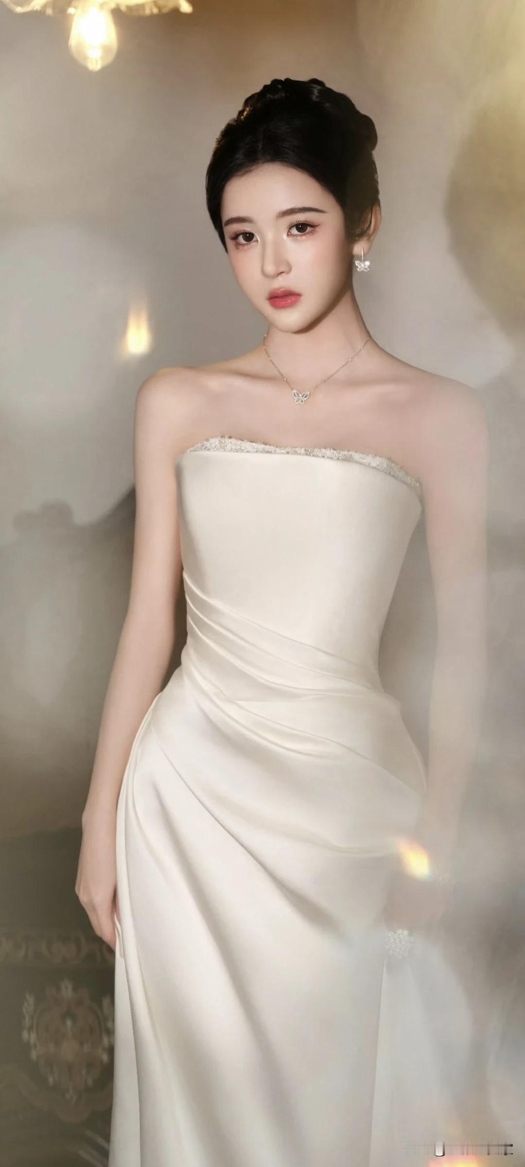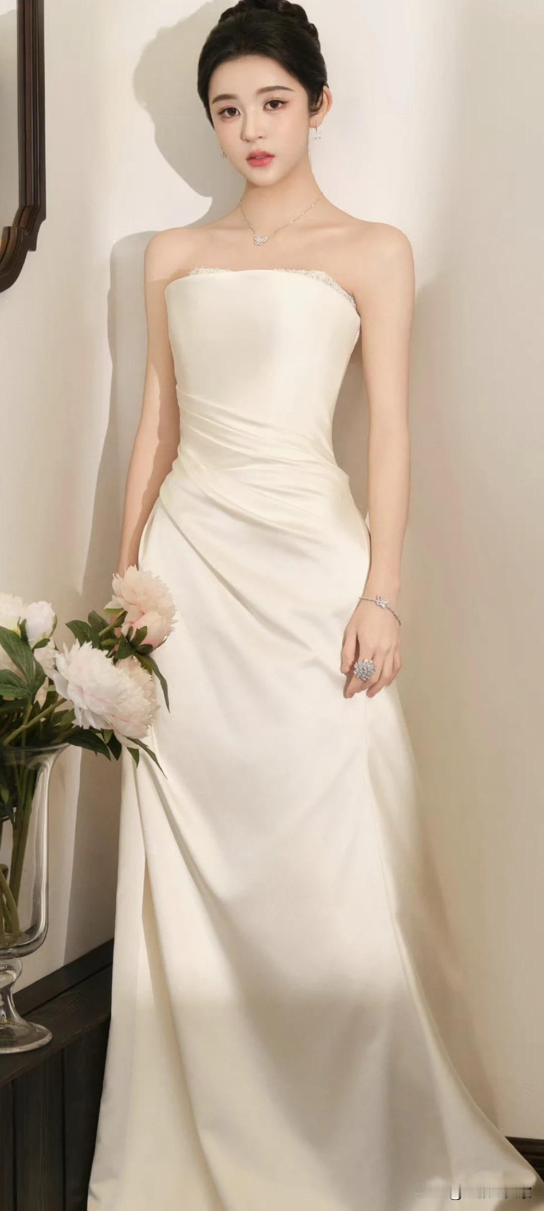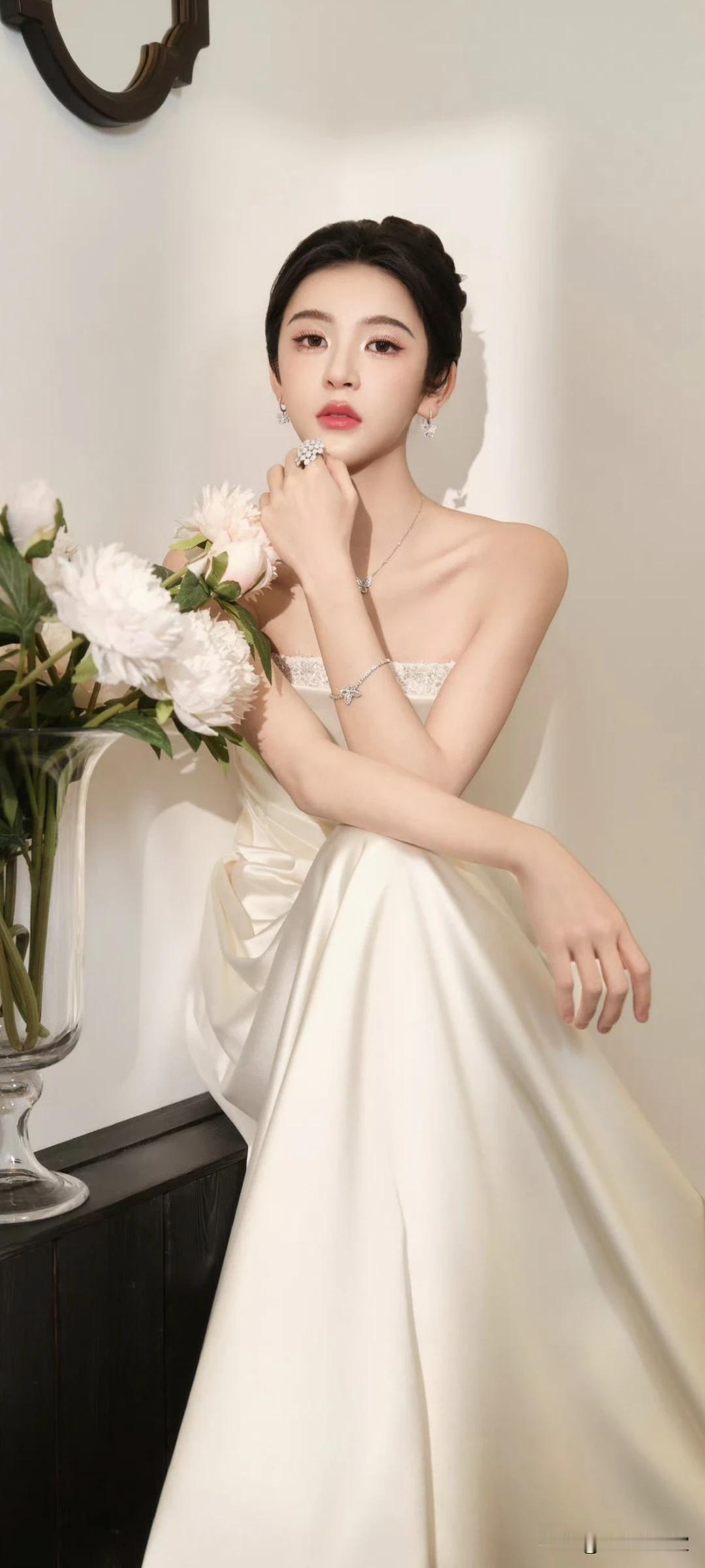 饶嘉迪写真壁纸~温柔系性感天花板!白裙衬得肌肤像在发光✨