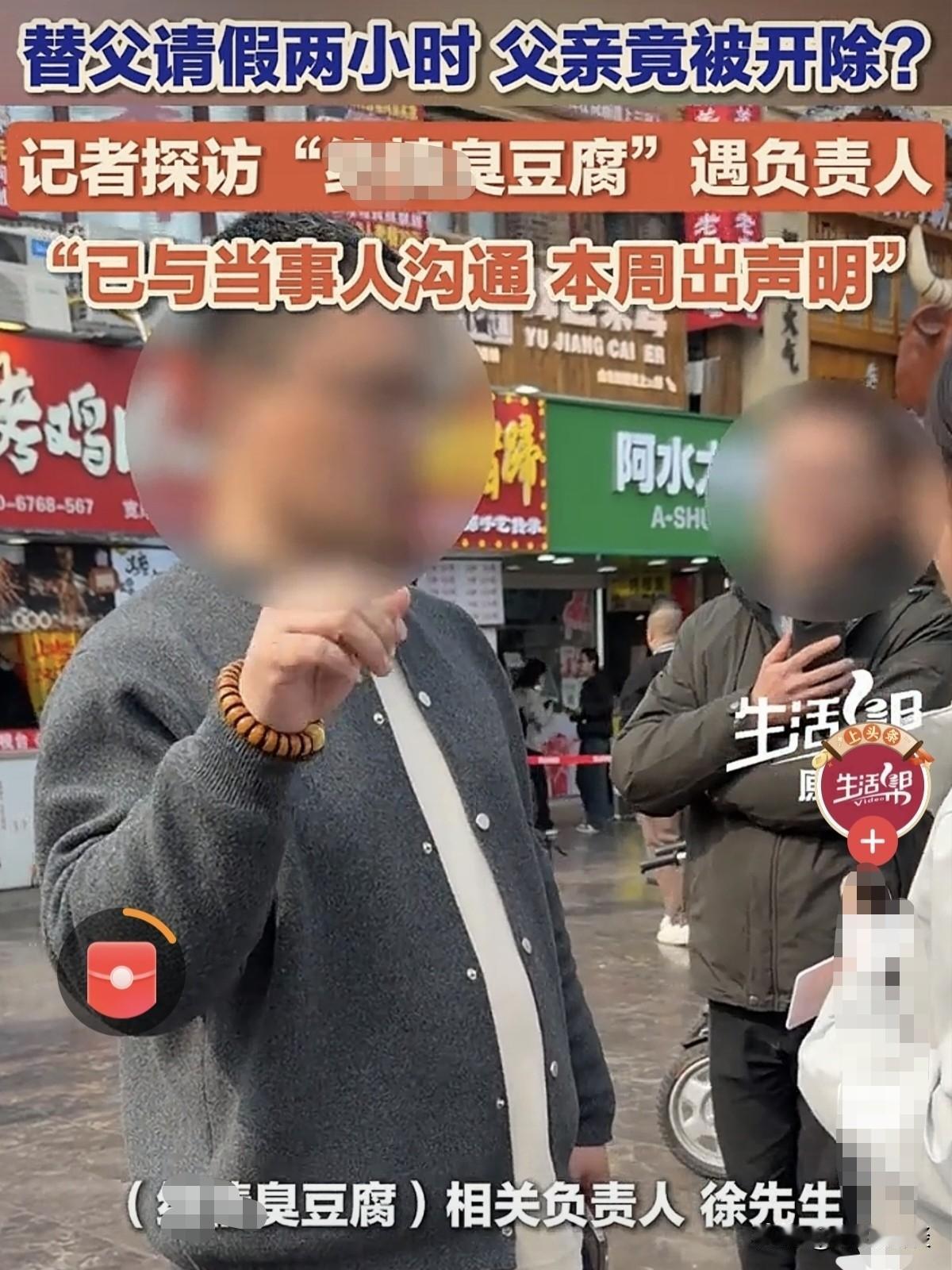 “这门店名不虚传!”山东济南,女子要回外地上班,临走前想陪父亲好好吃顿饭。父亲在臭豆腐店当炸锅师傅,春节忙前忙后只休息了一天,女子思前想后,决定11点以后再给父亲请2小时假。可老板半点情面都不讲,直言一分钟假都不批,还直接把老人辞退。女子又气又委屈,当场冲到店门口讨说法,直言这家店实在太绝情。 正月初五,年味儿还没完全散去,家家户户还沉浸在过年团圆的热闹里,可李女士的心里,却酸酸的。 再过一天,她就返回杭州上班,这一走少说也要大半年才能再回家。 对在外打拼的人来说,每一次离家,都藏着太多不舍,最想做的,无非是临走前,好好陪家里人吃一顿热乎饭,说几句贴心话。 李女士的父亲,在当地一家炸臭豆腐的店里打工,是店里的炸锅师傅,每天守着一口滚烫的油锅,从早忙到晚,经常熬到后半夜才能歇下来。 店里生意忙,父亲一刻都不敢闲着,翻炸、控油、打包,手脚不停,一天站下来,腰酸腿疼是常事。 尤其是春节这段时间,街上人多,店里更是忙得脚不沾地,别人家都是团圆聚餐、走亲访友,歇个好几天,可他整个春节假期,只休息了一天。 每次想到这里,李女士心里就不是滋味,父亲一辈子老实本分,勤勤恳恳,她看着心疼,却又没办法时刻陪在身边。 所以这次离家前,她就想和父亲安安静静坐在一起,好好说说话,算是给这次离家,留一点温暖的念想。 李女士也很明事理,考虑不能老板生,她特意安排到晚上十一点之后,街上的人少很多,店里没那么忙了,给父亲请两个小时的假。 她甚至主动跟老板说,请假的这两个小时,工资该怎么扣就怎么扣,等吃完饭,如果需要,父亲立马回店里继续上班,绝不耽误店里的生意。 她想着,自己好好跟老板商量,都是出门打工讨生活的人,谁家里没有亲人,这点人情味儿,老板总该能理解。 可她怎么也没想到,换来的却是老板冷冰冰、硬邦邦的一句话:一分钟都不行。 没有商量,没有体谅,连一句缓和的话都没有,直接把路堵死。 李女士当时就愣住了,心里一下子凉了半截。更让人想不到的是,老板不仅不批假,转头就直接给她父亲打去电话,语气强硬地放话:只要敢请假,直接开除。 父亲在这家店里干了很久,做事踏实认真,从不偷懒耍滑,迟到早退。 也从不乱请假、惹麻烦,是店里靠得住的核心员工,老板平日里也很依赖他。 可就是这样一个老老实实、兢兢业业干活的老人,就因为女儿想陪他吃两小时饭,还在晚上11点以后。 连一句辩解的机会都没有,直接被老板无情开除,连一点情面、一点旧情都不留。 得知父亲被开除的消息,她实在想不通,父亲任劳任怨,春节都没好好休息。 不过是和女儿吃2小时饭,怎么就犯了天大的错,连饭碗都保不住? 李女士越想越气,当场跑到店里和老板理论,站在店门口忍不住控诉,说老板做事实在太绝情、太让人寒心。 后来有记者想找店里问问真实情况,刚开口就被工作人员不耐烦地怼了回去,直接吼着“跟你没关系”就挂了电话。 还有店员说李女士说的都是假话,可记者追问到底哪里不属实,对方又支支吾吾说不出具体内容。 这段视频传到网上之后,大家看完都替老人抱不平,心里又酸又气。 很多人都说,打工人不容易,老人勤勤恳恳干了这么久,就两个小时的假,又愿意扣工资,又不耽误生意,老板连这点包容心都没有。 老实本分的员工,说开除就开除,一点人情味都不讲,实在太让人心寒。 《劳动合同法》第87条:用人单位违反法律规定解除或者终止劳动合同的,应当依照本法第四十七条规定的经济补偿标准的二倍向劳动者支付赔偿金。 老板属于违法解除劳动合同,按照法律必须给老人双倍赔偿金。 干满一年赔两个月工资,不满半年按半个月算再双倍,工作时间越长,赔得越多。 老人踏实干活、没有过错,老板说开就开,必须依法赔偿,不能让老实人白受委屈、丢了饭碗还没补偿。 老人可以拿着工作记录、工资流水、辞退相关证据,依法维权。 目前,当地有关部门正式介入这件事,开始全面调查核实。 27号记者去店里看了发现,臭豆腐店还在正常开门做生意。 店里一位负责人徐先生说,最近总有人打电话过来骂他,他也已经和李女士这边沟通过了,说这一周之内,会对外发布相关情况说明。 对于老板的做法,你怎么看呢? @静心法谈 学法辨是非,慬法不吃亏。