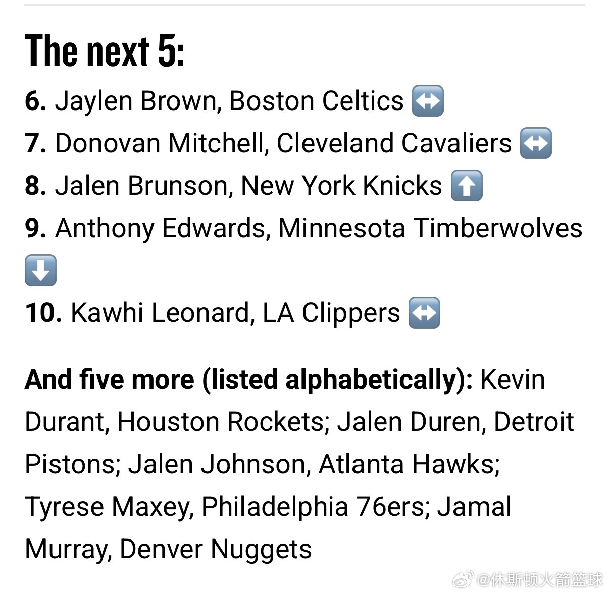 最新一期的MVP排行榜,阿杜又没有进前十