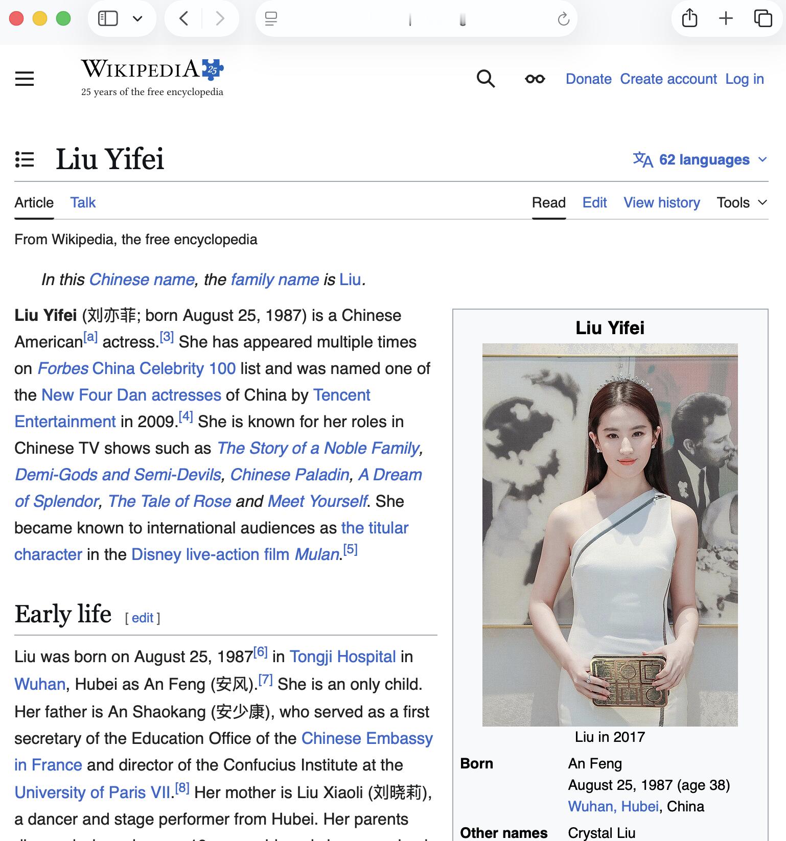 刘亦菲 lyf 花木兰 记录我们国际巨星刘亦菲Liu Yifei最新维基百科Wikipedia语言词条数达到63Wiki的语言词条数是检验真正全球星光的重要指标之一刘亦菲好像动画片里的公主
