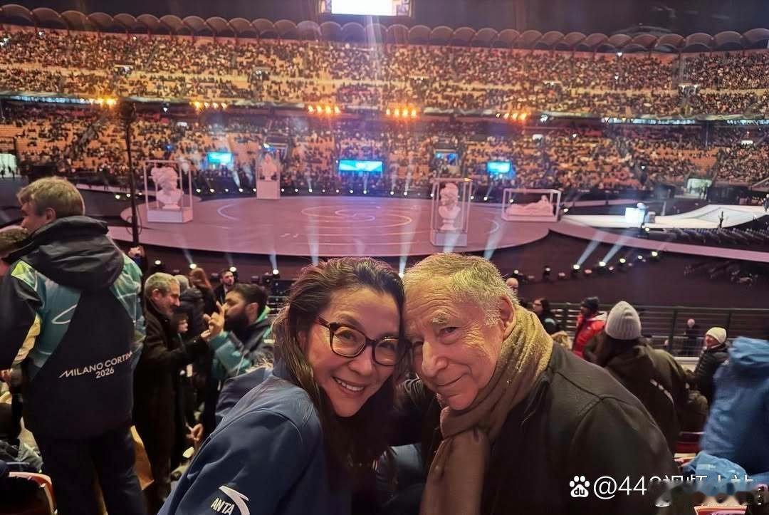 63岁杨紫琼和富商老公现身米兰冬奥开幕式,夫妻俩看起来很恩爱,但外表实在很不般配,看起来像爸爸和女儿!
