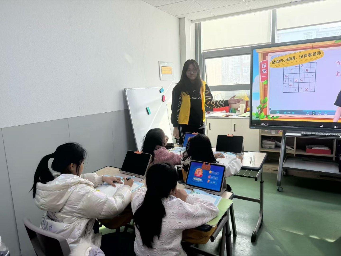 在创意美术课堂上,队员们引导孩子们以画笔为媒,在色彩与线条间释放想象力,用指尖的温度替代屏幕的蓝光;在趣味益智课堂中,借助数字化工具辅助教学,将数独等思维训练融入互动,让知识传递更具吸引力;在感统训练馆内,通过平衡木等器材,陪伴孩子们在运动中锻炼体魄、增强自信,用真实的陪伴筑牢成长根基。