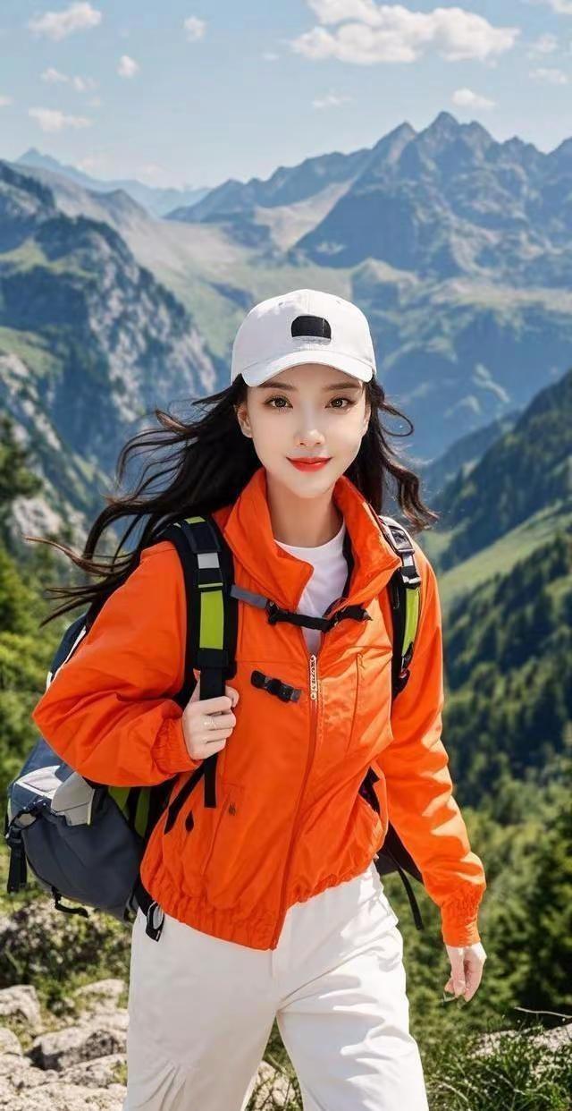 这才是徒步正确打开方式✨ 橙色冲锋衣撞色山野太出片啦😎 风吹发丝都是自由的形状~ 👇你准备好出发了吗?
