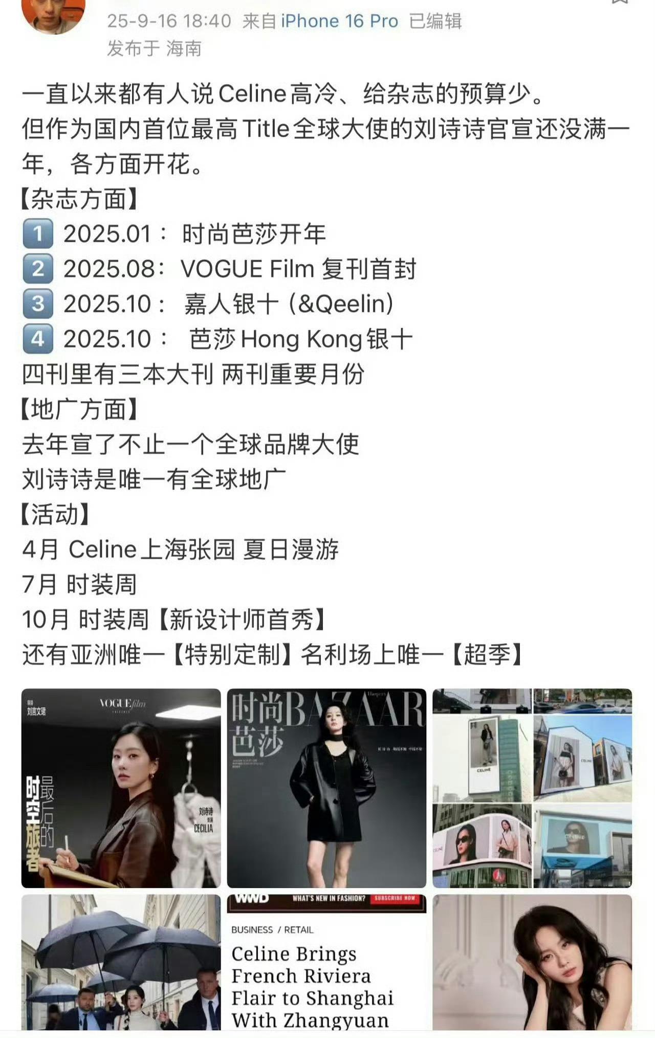 刘诗诗Celine顶级待遇,不仅看秀坐第一排ceo旁边,还是中国首位GBA,有全球地广,以及亚洲唯一能穿特别定制➕超季全球首穿,一姐厉害呀刘诗诗celine全球品牌大使