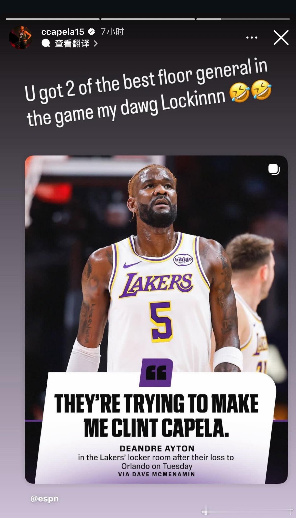 今天卡佩拉回应:“你身边可是有两位最好的球场指挥官,好好打球吧兄弟🤣🤣”