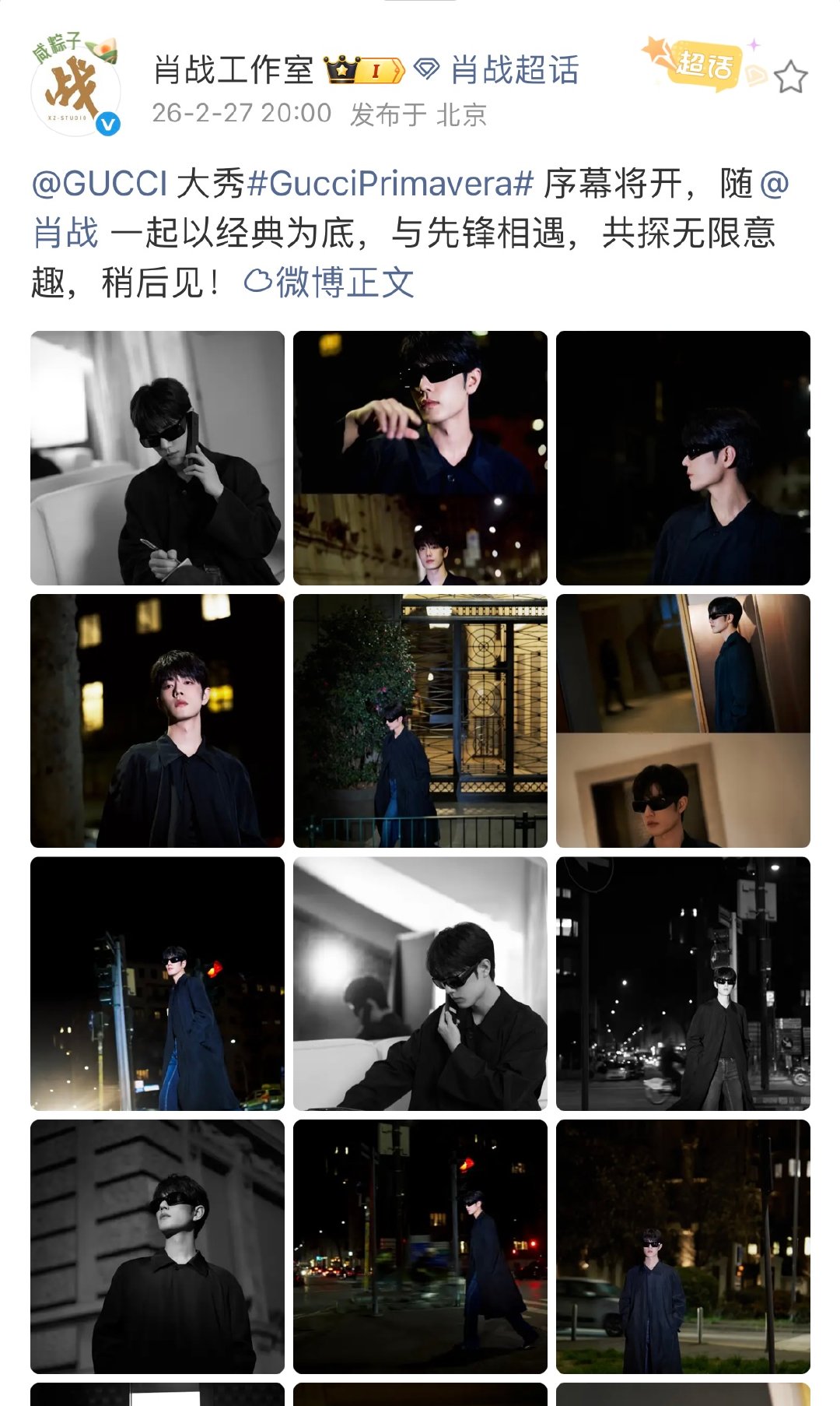 肖战gucci造型出图肖战黑风衣墨镜造型肖战gucci看秀出图!黑色长风衣包裹薄肌身材,血槽已空