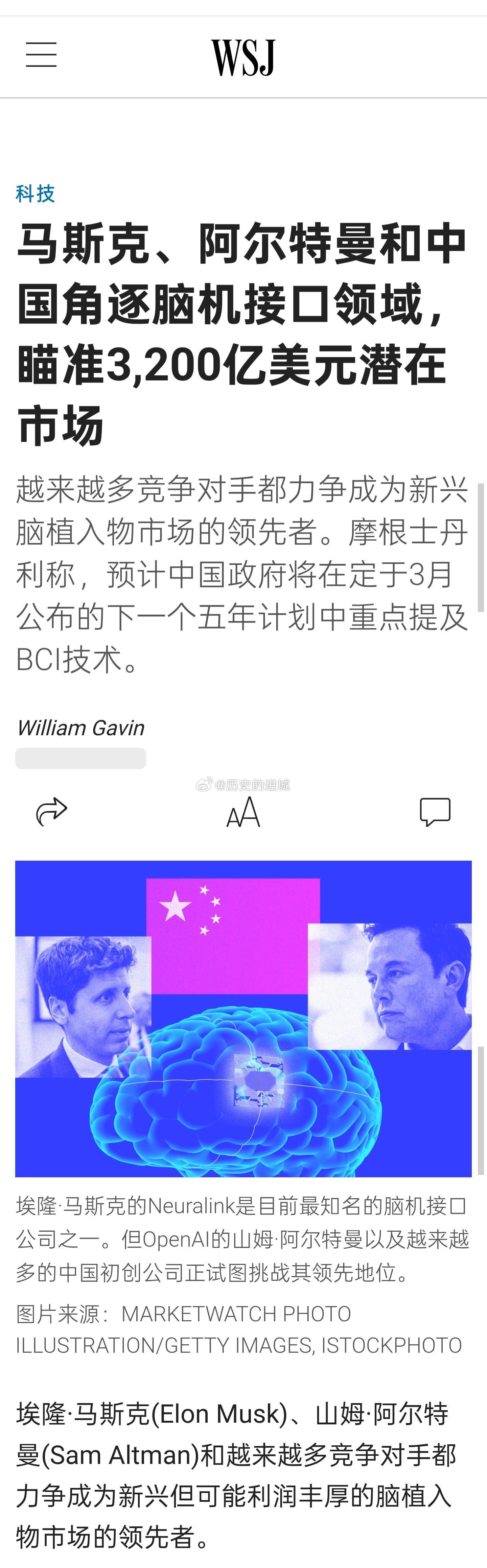 马斯克、Sam Altman和越来越多竞争对手都力争成为新兴但可能利润丰厚的脑植入物市场的领先者。摩根士丹利的分析师估计,到2035年,全球脑机接口技术市场规模可能达到800亿美元。该行在周三给投资者的一份报告中表示,此后十年,仅美国BCI市场的估值就可能达到3200亿美元。摩根士丹利称,预计中国将在定于3月公布的下一个五年计划中重点提及BCI技术。
