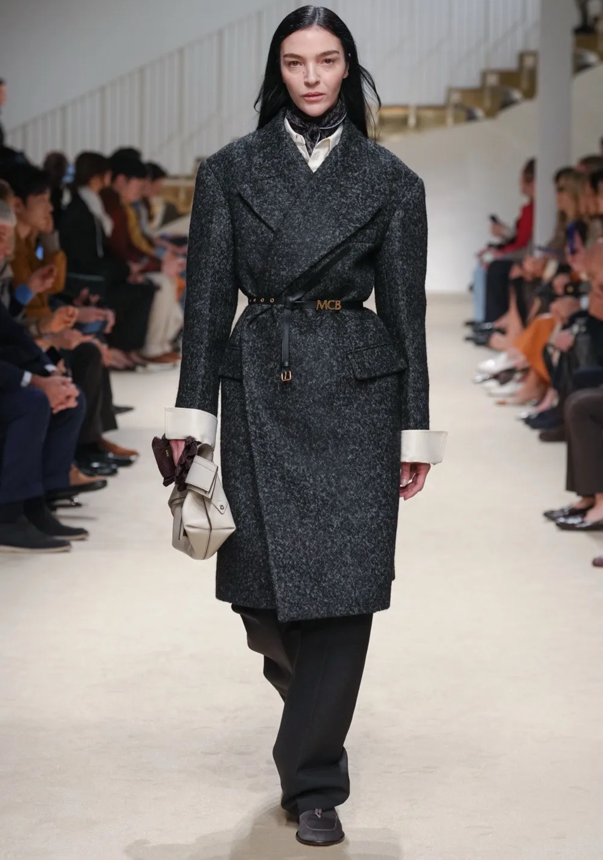 配饰部分尤其完整,从鞋履到手袋形成统一语言,马具工艺与金属细节的呼应,让整个系列在低调中显露力量。这是一种不张扬的自信,也是一种成熟而清醒的意式优雅。