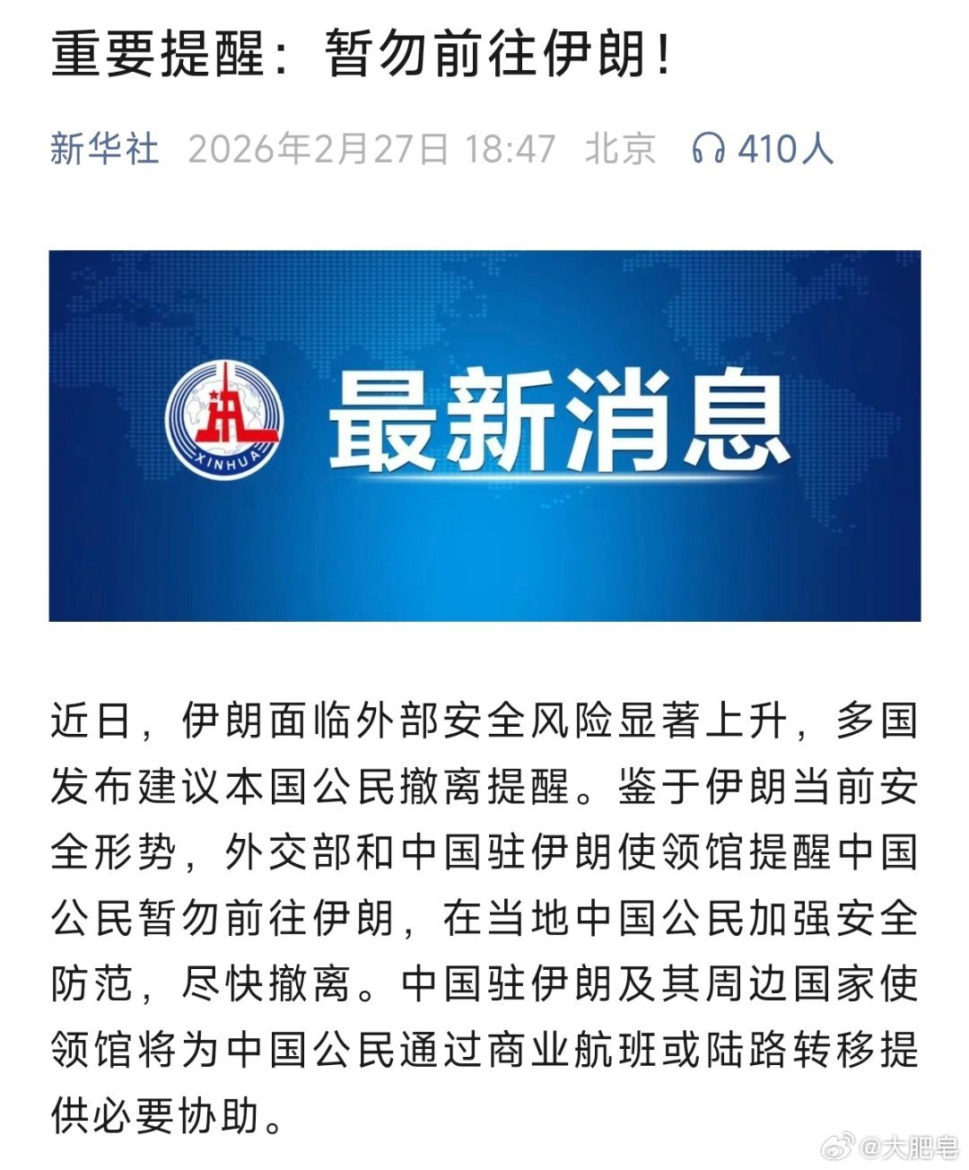 提醒在伊朗的中国公民尽快撤离要相信咱家信息收集能力……这次看起来要真动手了。