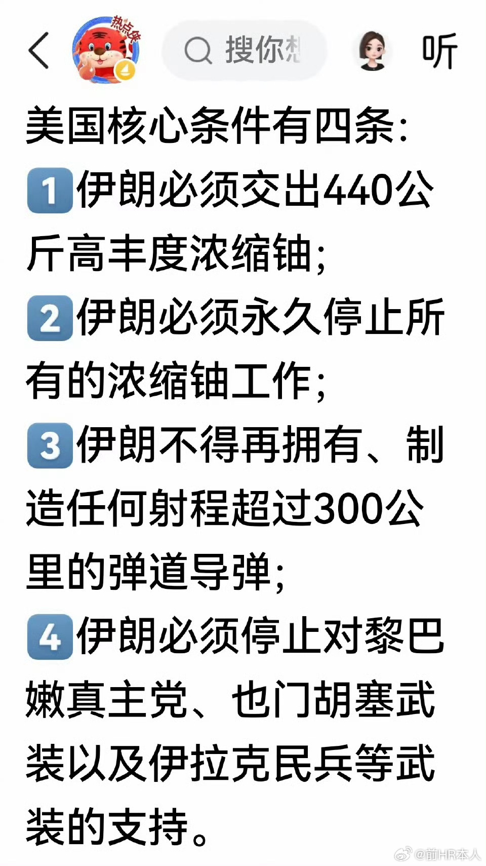 美国对伊朗名为谈判,实为压降,战争阴云已笼罩波斯湾!当前美伊日内瓦间接谈判表面上是给伊朗留下缓和空间,本质上却是美国精心设计的压降陷阱。因为外网披露的美方谈判条件,要求伊朗上交全部浓缩铀、永久放弃铀浓缩、销毁300公里以上射程导弹、切断对真主党与胡塞武装等力量的支持,本质上是要求伊朗自废武功、放弃国家外加主权与大国防御能力。这场谈判从一开始就不是什么平等对话,而是美国联合以色列对伊朗的极限施压,所谓“和谈”,不过是军事打击前的舆论铺垫,为美国人调兵遣将留时间罢了。首先,从谈判逻辑来看,即便伊朗全盘接受美方条件,也绝无可能换来美国的“放过”,这是国际政治早已验证的残酷现实。当年美国为首的北约曾明确向俄罗斯承诺“不东扩一寸土地”,如今却一路东扩至俄罗斯家门口,彻底撕毁承诺;也是俄乌冲突为什么会爆发的一个根源。当年对朝鲜弃核承诺也是玩弄手段,最终朝鲜等不到承诺的援助不欢而散。美国对对手的承诺,从来都是服务于自身霸权的工具,毫无信誉可言。伊朗若放弃核能力、销毁远程导弹、斩断地区盟友网络,就等于失去所有战略反击手段,沦为任人宰割的对象。届时,美国无需发动正面战争、只需要以色列打击,加上通过制裁渗透、内部颠覆、扶持反对派等手段,轻松瓦解伊朗现政权,实现“不战而屈人之兵”的目的。面对这样的“死亡条款”,伊朗从国家生存角度出发,根本不可能答应,谈判破裂早已注定。其次,美方提出的苛刻条件,背后清晰可见以色列的战略意图,核心就是彻底剥夺伊朗反击以色列的能力。伊朗是中东地区少数敢于直面以色列、支持反以力量的国家,其远程导弹与核能力,是制衡以色列肆意妄为为非作歹的关键屏障。美国要求伊朗销毁300公里以上导弹、放弃铀浓缩,相当于让以色列彻底消除心腹大患,从此在中东横行无忌。要知道,以色列连准盟友卡塔尔都敢贸然空袭,对死敌伊朗更是毫无顾忌,一旦伊朗失去反击能力,以色列必将对其展开无差别轰炸,摧毁伊朗战略资源,美国则在背后撑腰,坐收渔利。这场谈判,本质是美国为以色列扫清战略障碍,维护犹太势力在中东的核心利益。再次,局势已经难以挽回,从中国驻伊朗大使馆的安全提醒中可见一斑。近期伊朗外部安全风险急剧上升,外交部与驻伊朗使领馆紧急提醒暂勿前往伊朗,在伊中国公民尽快撤离,多国也同步发布公民撤离警告。这一信号明确传递出美国的军事部署已基本到位,对伊朗的军事行动箭在弦上,所谓的谈判只是拖延时间、完成战前准备的幌子。从美军双航母战斗群合围伊朗、隐身战机与精确制导武器密集部署的态势来看,战争已进入倒计时。连美国都要求公民要离开以色列,就是怕伊朗反击以色列。总体上,纵观全局,美国对伊朗的最终手段必然是联合以色列发动军事打击,且大概率会复刻当年打击南联盟的模式,就是不出动地面部队,以长时间、高强度空袭为主,精准摧毁伊朗核设施、导弹基地、指挥中心、能源设施等战略目标,通过持续轰炸瓦解伊朗的抵抗意志,逼迫其彻底屈服。伊朗国土辽阔、地形复杂,美国深知地面入侵会陷入战争泥潭,重蹈伊拉克、阿富汗的覆辙,而南联盟式的空袭战,既能以最小代价实现战略目的,又能避免美军人员大量伤亡,是美国的最优选择。这场博弈的本质,是美国霸权主义、以色列扩张野心与伊朗生存权利的冲突。美国所谓的“和谈”,从头到尾都是骗局,压降才是核心目的。波斯湾的战云已无法驱散,伊朗现在最关键的就抓紧买点武器吧。