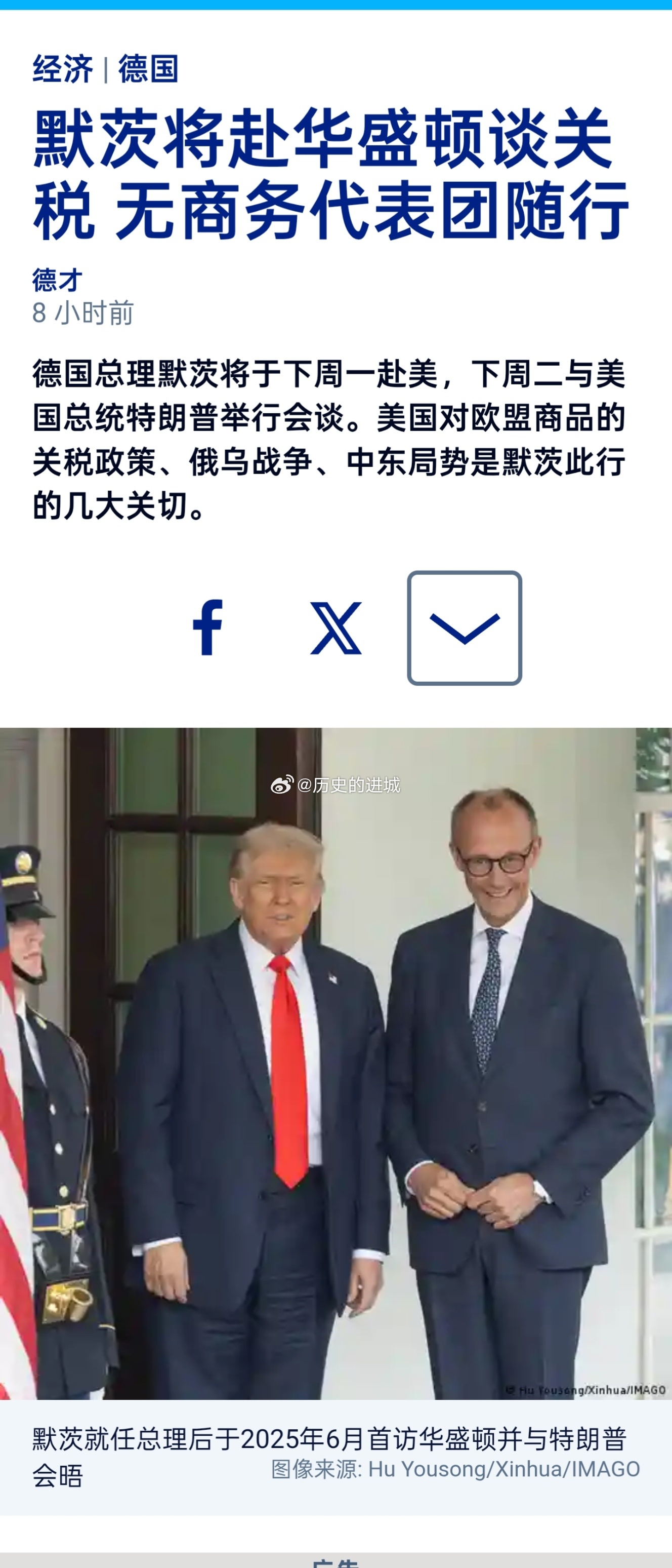 德国总理默茨将于下周一赴美,下周二与美国总统特朗普举行会谈。美国对欧盟商品的关税政策、俄乌战争、中东局势是默茨此行的几大关切。德国总理默茨将于下周一赴美,下周二与美国总统特朗普举行会谈。美国对欧盟商品的关税政策、俄乌战争、中东局势是默茨此行的几大关切。海外新鲜事
