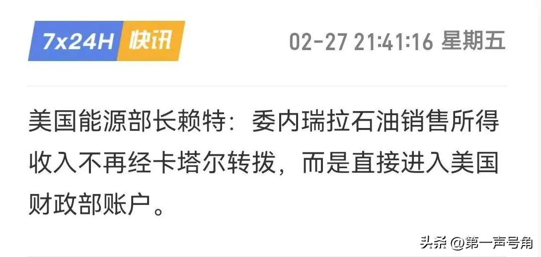 美国能源部长赖特:委内瑞拉石油销售所得收入不再经卡塔尔转拨,而是直接进入美国财政部账户。 评几句 赖特的声明少了外交辞令的修饰,却多了强权逻辑的坦诚:在华盛顿的地缘政治算盘中,委内瑞拉石油早已不是商品,而是人质。这种将制裁对象国民生计直接充作本国财政补充的做法,不仅侵蚀国际法基石,更在资源国心中埋下对现行国际秩序深刻的不信任种子。