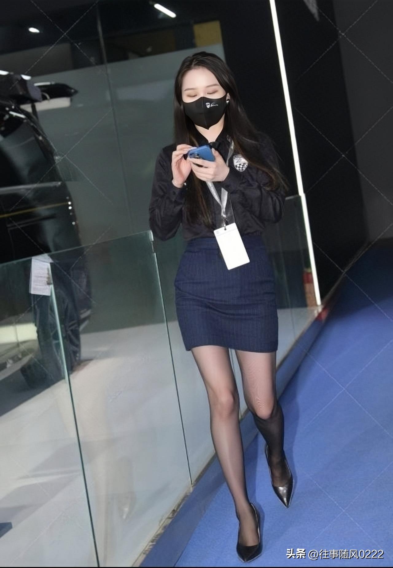 优雅车展现场,白衣女子手持平板,引人注目