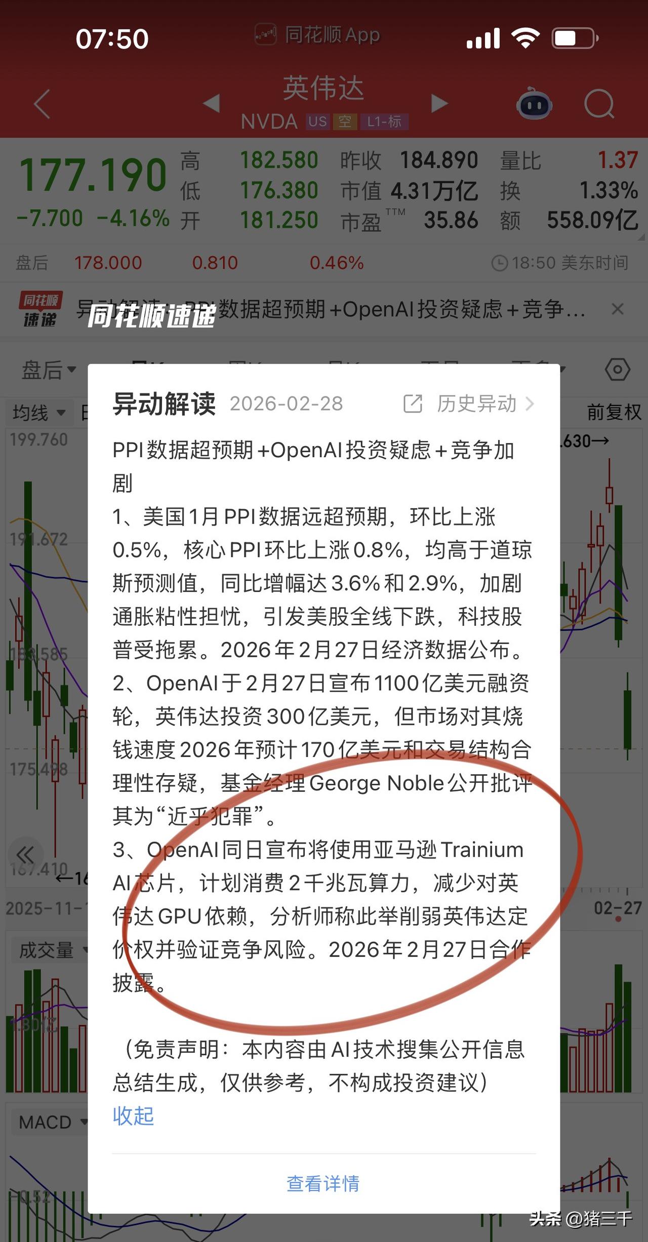 全球Ai芯片龙头英伟达两个交易日重挫近10%, 华尔街分析师工作还是细致: 看业绩增长是其次, 更要看业绩增长的成色。 这件事情的始末: 就是英伟达给Openai投资, Openai买英伟达的芯片, 大家互相成就。 现在出现了变数: ·OpenAi不再对英伟达死心塌地, 和亚马逊态度暧昧采买其Ai芯片以摆脱对英伟达的依赖! ·AMD、亚马逊、谷歌开始分食英伟达的份额, 美国电力紧缺又绊住了科技公司Ai数据中心建设的脚步! ·还有更重要的一点,2025年科技巨头们数据中心资本支出都是花自己的钱,2026年开始付不起了,转而向股市发债融资,这将极大的吞噬资本回报率! 分析师认为英伟达难以维持50%的高增速, 增速切换就会杀估值!