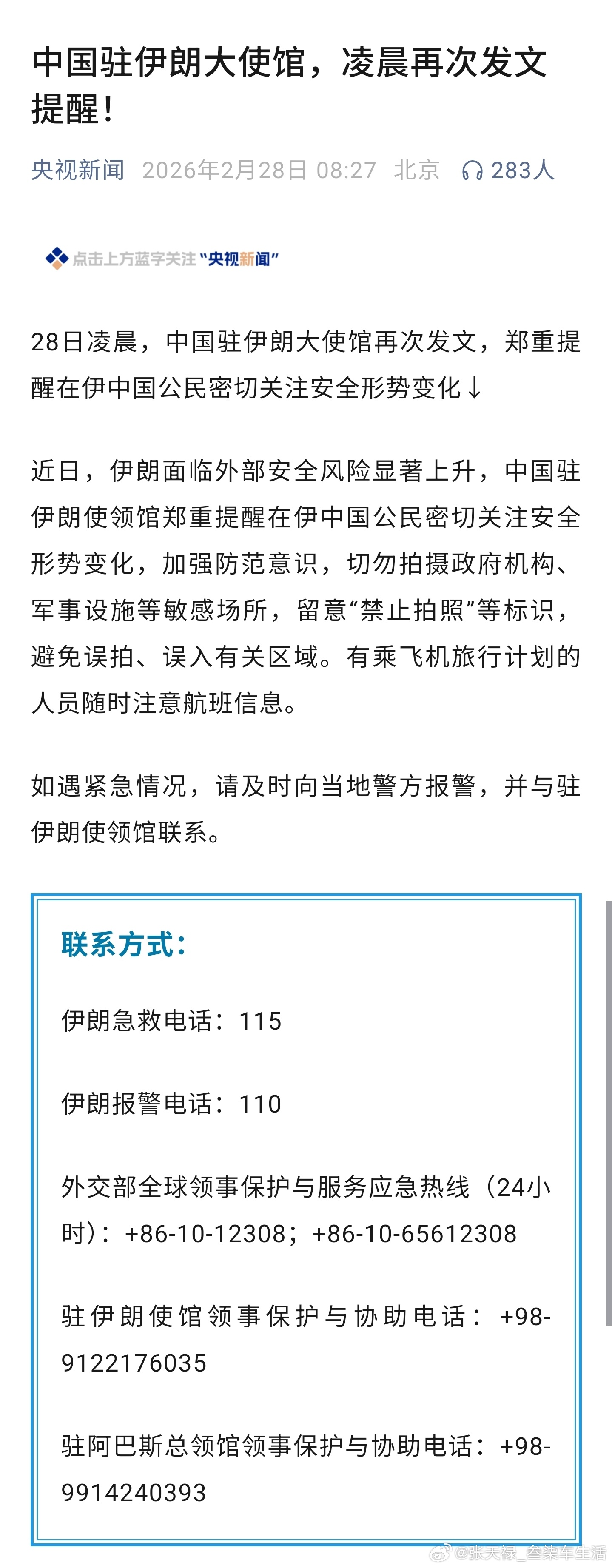提醒在伊朗的中国公民尽快撤离形势严峻啊