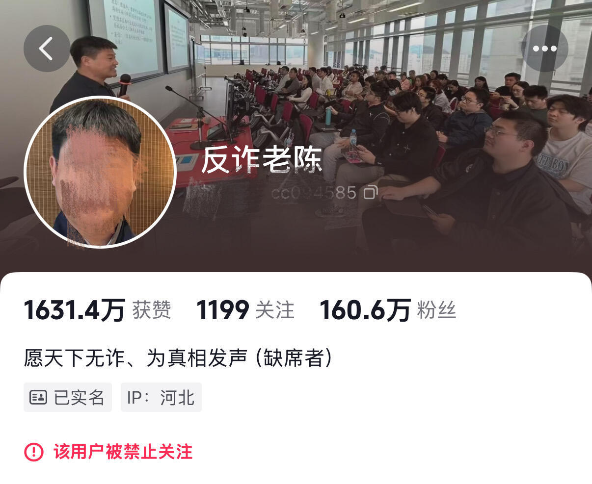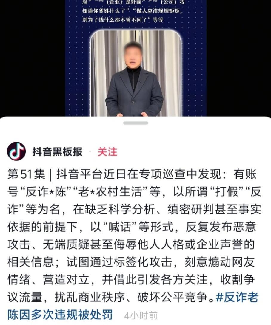 反诈老陈因多次违规被罚反诈老陈账号因为喊话被抖音给处理了!