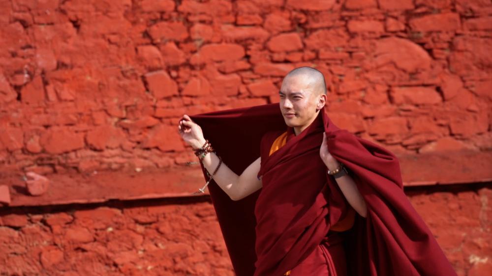 这是哪家的俊俏儿郎啊,为何不爱红尘偏爱修行? 就凭这等颜值,踏入娱乐圈怕也不是一件难事吧! 活佛身着红袍漫步红墙,想来这和明星走红毯的意义大抵相近吧! 这位活佛不仅颜值出众,还是一位藏文书法家呢!