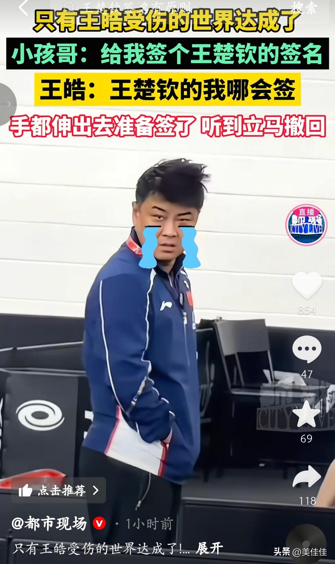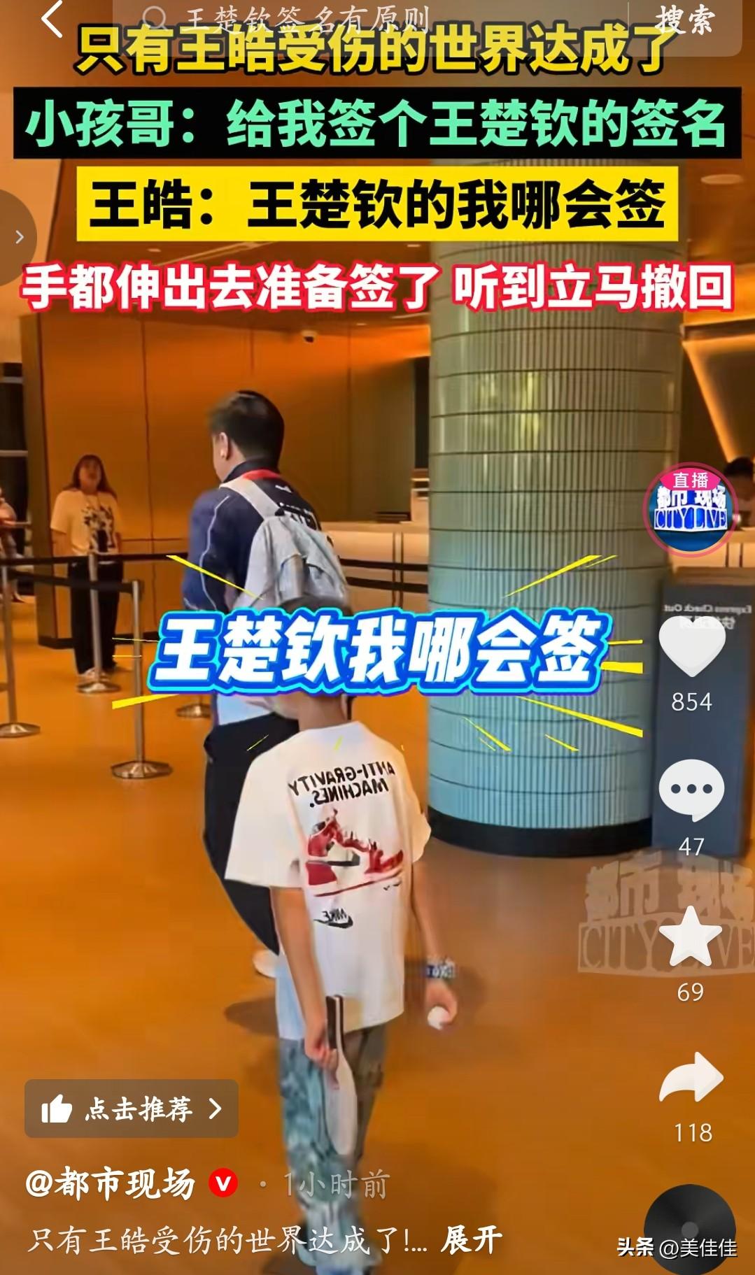 小孩哥找王浩要签名,王浩刚准备落笔,结果小孩哥一句话直接把他整懵了:“给我签个王楚钦的签名!”王浩当场一句:“王楚钦的我哪会!”头也不回转身就走。 这位小孩哥也太真实了,主打一个目标明确、直奔偶像,连教练的面子都不管了。王浩估计心里又好笑又无奈,自己这教练当得,风头全被徒弟抢光了,真是又可爱又搞笑的一幕。