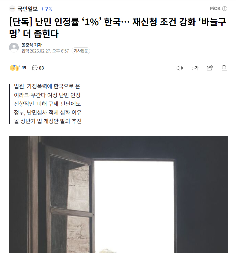 然而,对于将韩国视为出路的难民申请者而言,有人担忧本就如同"针眼"大小的难民认可可能性将进一步收窄。有人指出,出入境当局连第一次审查机会都没有好好给予,现在还要剥夺再审机会,这是不合理的。