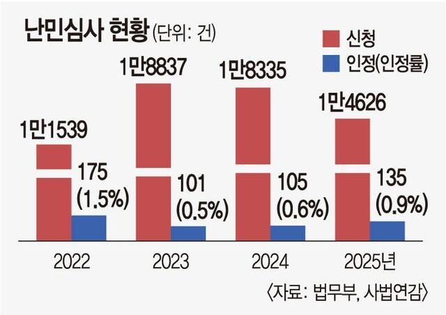 法务部立场是,由于占全部申请件数约10%(1595件)的重新申请,导致难民审查积压严重,因此需要改善制度。法务部相关人士表示:"目前的结构是可以无限反复重新申请,因此正在参考外国案例,如从第二次申请开始运用资格审查制度等,准备法案。"2020年为14984名的难民审查待审人数,到2024年增加至27706名。另外,还计划在目前90名水平的难民审查人力(含本部人员)基础上,再增加75名。