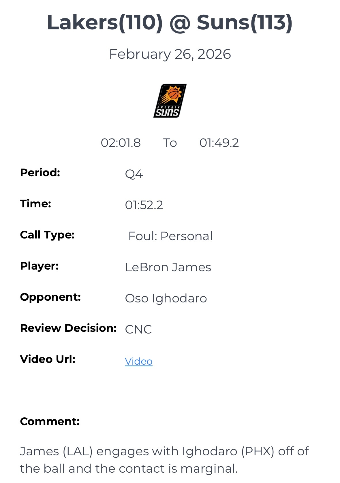昨天湖人与太阳的比赛,裁判报告显示没有出错。但也有湖媒表示阿伦有走步嫌疑。