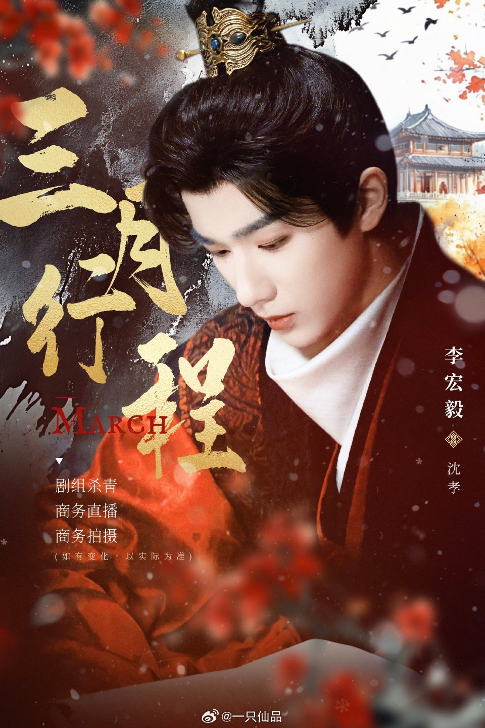 李宏毅三月行程图已送达剧组杀青➕商务直播➕商务拍摄,期待期待期待!