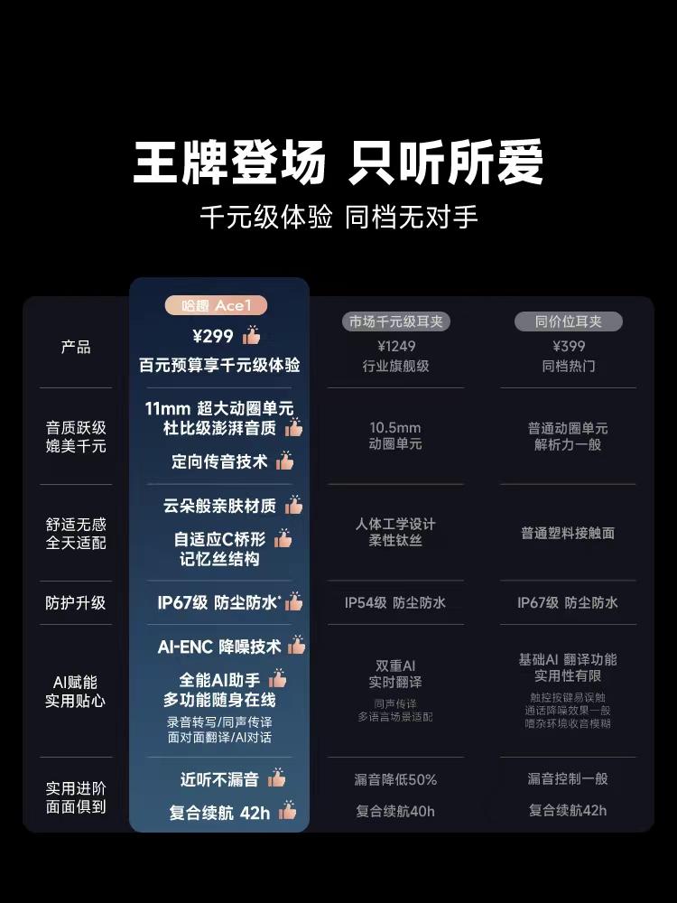 3月宠粉福利来了,只需关注和转发就能参与,这次抽1人送哈趣Ace1耳夹式蓝牙耳机,3月8日15:00开奖,粉丝不多,中奖率高。 这次给大家的礼物是哈趣Ace1耳夹式蓝牙耳机,直接把音质、舒适度、AI功能拉满,用过的人都说回不去了! 它是开放式耳夹设计,不塞耳朵、不闷耳,戴眼镜也完全不卡!云朵亲肤材质+人体工学承托,戴一整天耳朵都不疼不胀,跑步、健身狂甩都不掉,太稳了! 音质直接越级!11mm超大动圈,低音有劲、人声通透,听歌像现场一样,细节超清晰。还有定向传音,不漏音不社死,公共场合也能放心听~ 自带AI黑科技真的超适合各种场合! ✅ 录音转写、会议总结,上课开会不用手写笔记 ✅ 同声传译、面对面翻译,出国交流毫无压力 ✅ AI通话降噪,地铁公交打电话也超清晰 ✅ 40ms低延迟,打游戏音画同步,追剧超沉浸 续航单次能用6-7小时,配合充电盒最高45小时长续航,出差旅行不用慌。IP67防水,出汗、小雨都不怕,全天候随便造! 299元就能拿下千元级AI交互+旗舰音质的耳夹耳机,现在到3月8日下午15:00由@头条抽奖平台 抽取一位粉丝送出。只需关注+转发即可参与,动动手指,也许你就是最幸运的那个人。 哈趣 哈趣耳机 哈趣Ace1 蓝牙耳机 耳夹式耳机 抽奖详情