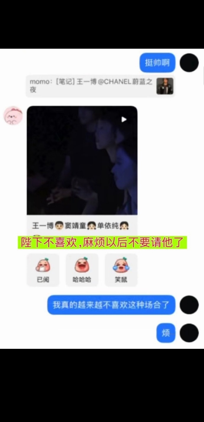 看了下聊天记录一眼假,这可以是任何人发的除了王一博。我一个路人都觉得王一博不可能这样嚼舌根,闲得他都去攀岩了好吧。