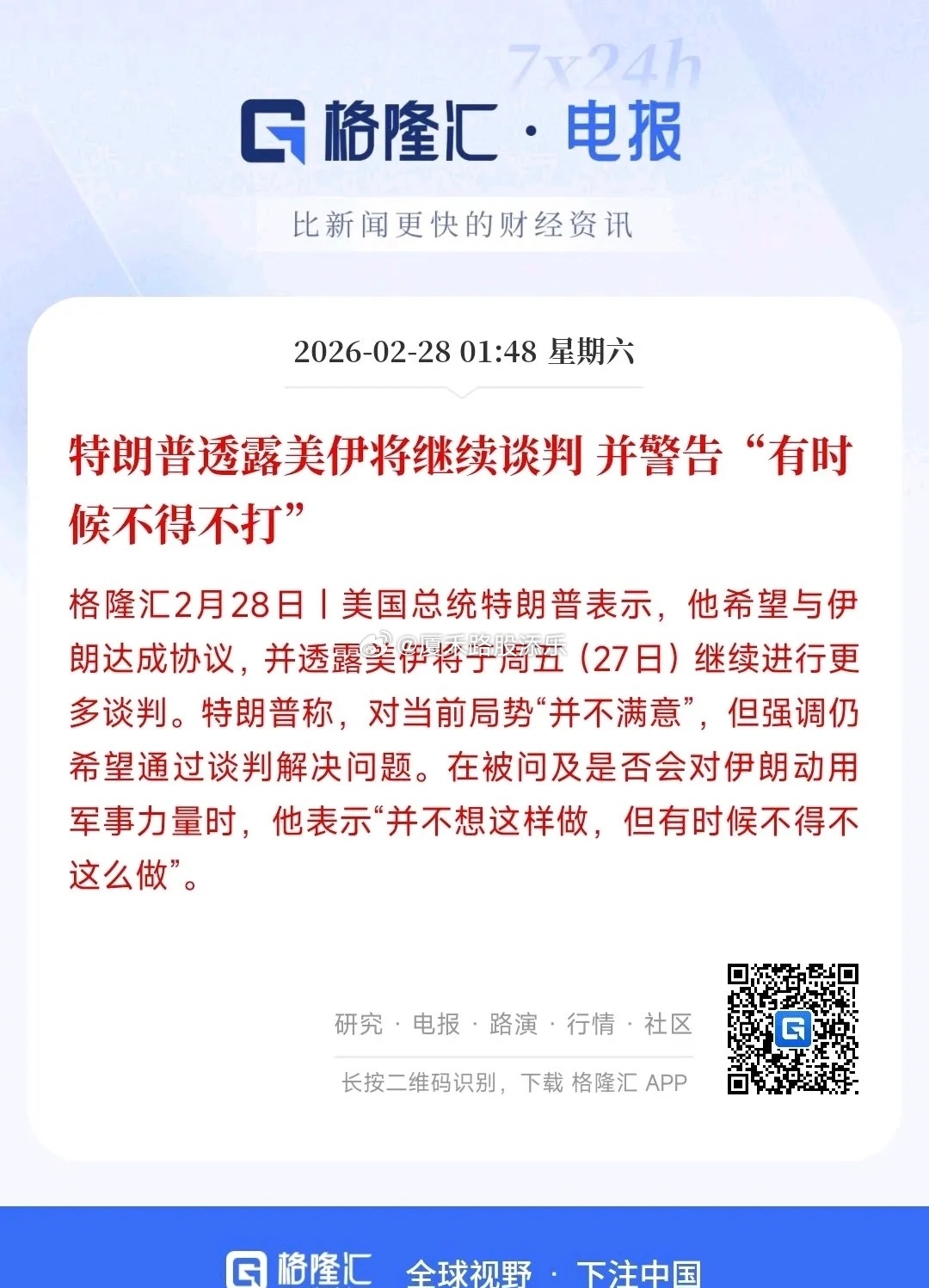 特朗普对美伊核谈判结果极度不满,公开警告“必要时将动武”,双方核心诉求完全对立。美方要求永久限制伊朗核计划、分步解除制裁并谈判导弹问题,伊方坚持全面立即解除制裁、保留和平核权利且拒绝谈导弹,谈判陷入死局;美军已在中东完成伊拉克战争以来最大规模军事集结,双航母与F-22/F-35部署到位,美驻以大使更直言袭击伊朗迫在眉睫,当前局势处于谈不拢就打的极限高压状态,战争风险急剧飙升~!
