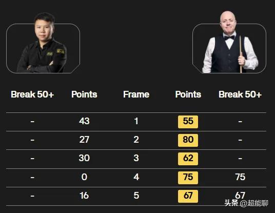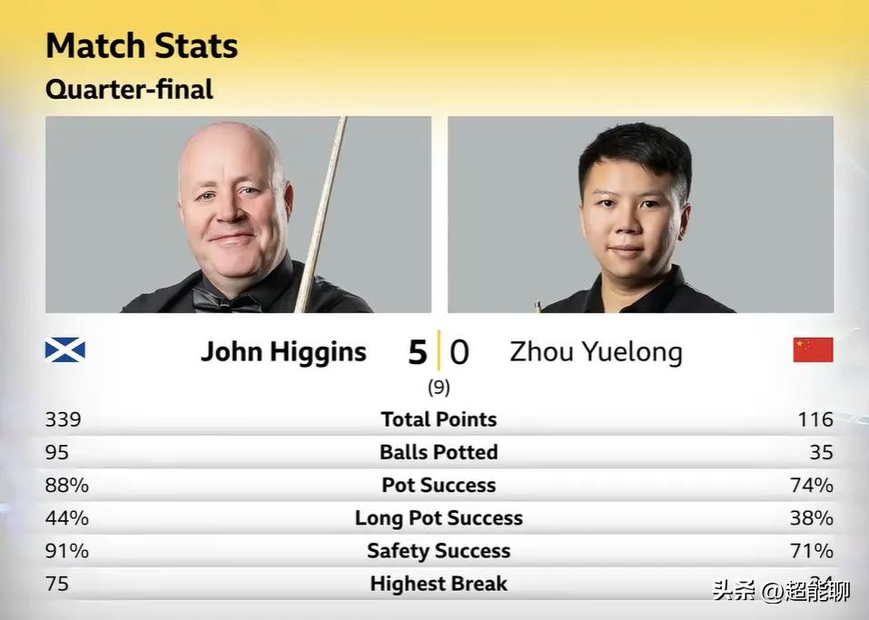巫师又进4强了,他和小司机的比赛关系到4位球员的命运。首先是艾伦的15w大奖,其次是肖国栋的巡回锦标赛资格,还有丁俊晖的世锦赛正赛资格,另外还有赵公子的世界排名。 刚刚决赛输给赵心童的希金斯,马不停蹄也赶到了威尔士,在赵公子这种年轻人体力都熬不住的比赛,他居然还能打进4强,还是5:0横扫了周跃龙,不得不令人敬佩! 周跃龙本场比赛完全被巫师的防守给压制了,就好像真的被施了巫术一样。既攻不上去也守不下来。回去真得好好再练练了。