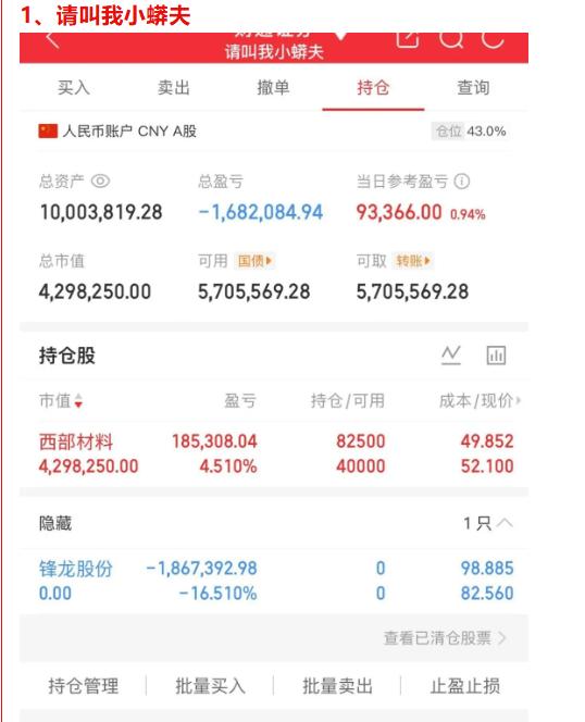 小莽夫锋龙亏损百万,终于舍得割肉了!前面本来赚好几万,由于仓位太大,后面直接吃几个跌停,看反弹无力,只能认亏走人!像锋龙、嘉美这种票,前期涨幅有多大,后面跌的就有多狠,主力在高位慢慢出货,即使反弹也是吸引散户跟风,最终达到出货的目的!下跌趋势已成,散户抱有幻想也没什么用了!