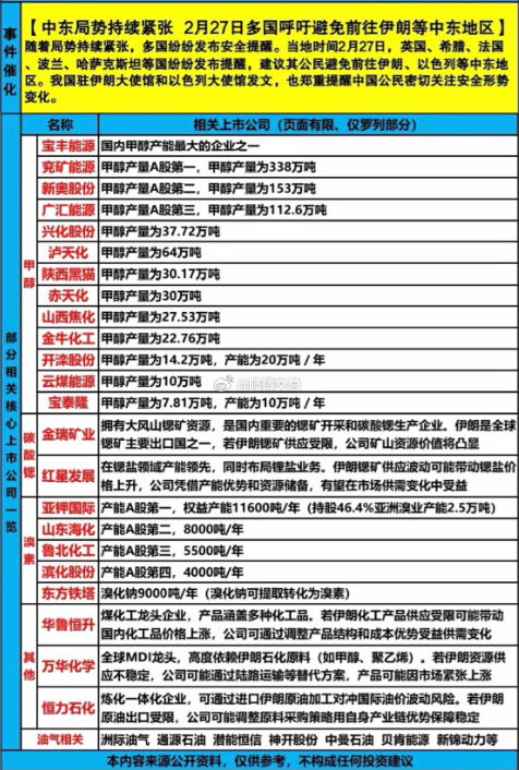 中东局势这是越来越紧张了,多国都呼吁避免前往伊朗等中东地区。(伊朗资源化工概念股)$宝丰能源 sh600989$ $鲁北化工 sh600727$ $万华化学 sh600309$