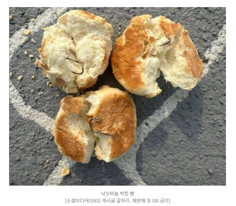 此前,在春节连休第一天即14日,社交媒体上出现了罗州市狗狗乐园发现嵌有鱼钩面包的帖子。