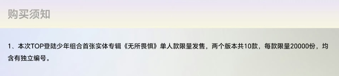 组合封面款两个版本的卡池相同,每个单人封面款两个版本的卡池相同。每个版本的单人封面款【限量20000份】每张单人封面款专辑均含独立编号。TOP登陆少年首张实体专辑