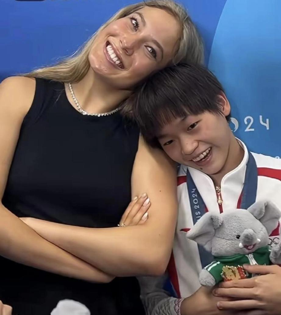 谷爱凌是全红婵的偶像。 一个来自于精英家庭,一个是地道的草根出身。 两位运动天才女孩见面的场景,也是热辣滚烫。 全红婵激动的手舞足蹈,说:终于见到真人了。 谷爱凌给她热烈的拥抱,两人颇有相见恨晚的感觉。 全红婵依偎着谷爱凌说:你好漂亮! 谷爱凌亲昵的回应,谢谢你! 优秀的人儿总会惺惺相惜。 因为她们都用辛勤的汗水拼搏过。