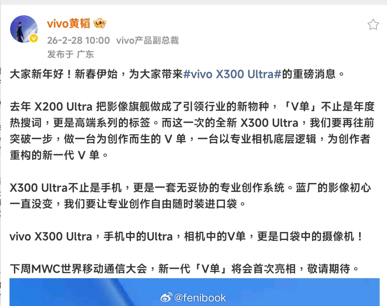 新一代V单要来了,不只是Ultra,更是最强口袋相机既然都叫V单了,是不是V卡口和V镜头群也要来了?你们猜vivo X300 Ultra