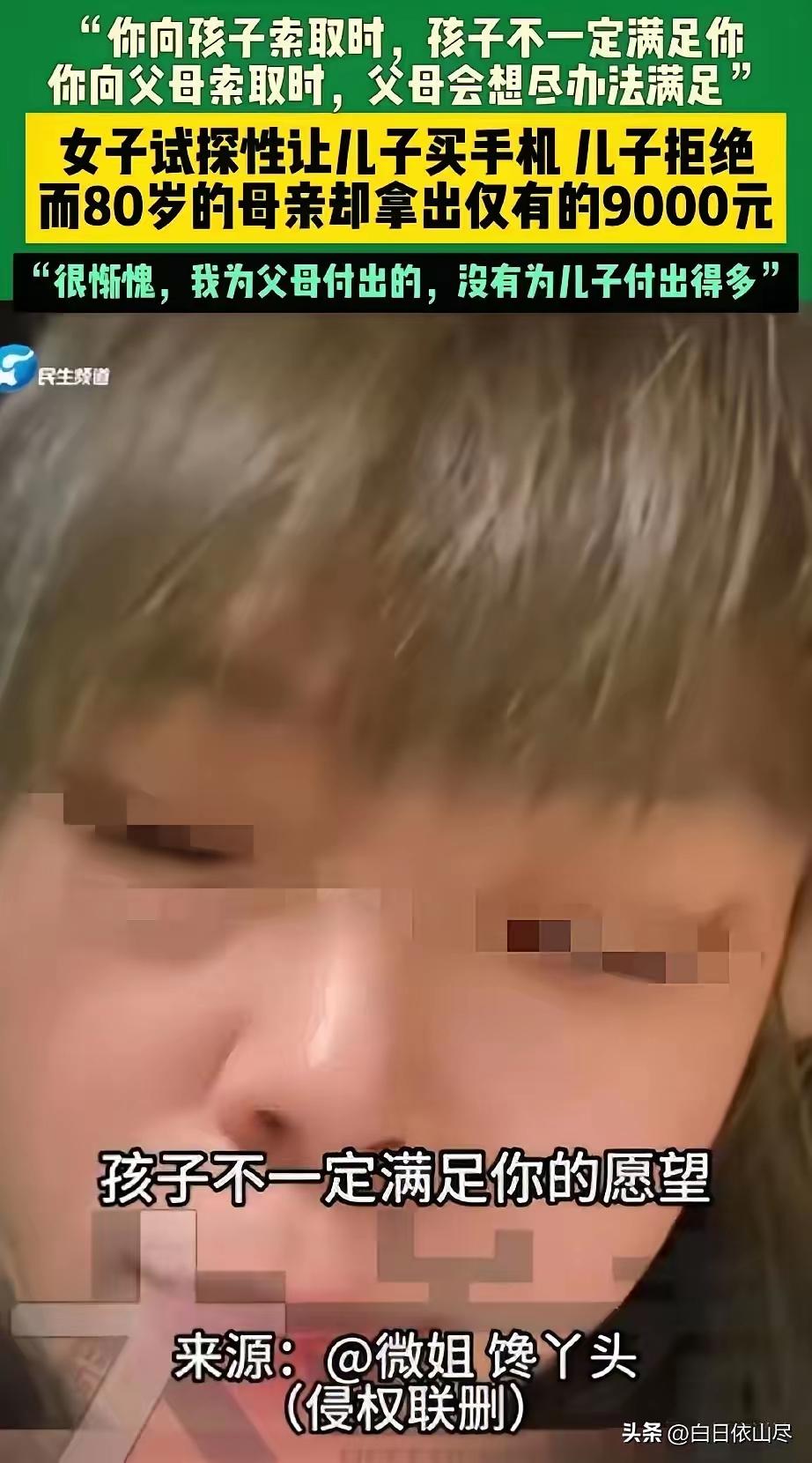 可怜天下父母心!吉林一位女子,先后对儿子和母亲做了同一个试探,结果却让她当场泪崩。 2026年2月26日,长春一位女子收到儿子转来的18000元,让她帮忙存着。她随口开玩笑试探:“妈能用这钱买个苹果17吗?” 儿子立刻摇头拒绝:“不行,这是我好不容易攒的。” 女子没生气,只是心里记了下来。 下午她去看80多岁的老母亲,又故意说:“妈,给我一万块,我想买手机。” 老母亲一听,面露难色,轻声说:“不太够啊……” 可下一秒,老人还是慢慢起身,走进卧室,从衣柜最深处拿出一个旧木盒,里面是她省吃俭用攒下的全部养老钱,有整有零,包裹得严严实实。 她把能拿出来的钱,全都掏给了女儿,一分没留,也没问用途,只想着满足女儿。 女子捧着那叠钱,看着母亲满是皱纹的手,再想起上午儿子的反应,瞬间破防,眼泪止不住地流。 同样是要钱: 孩子会想着自己的辛苦、自己的积蓄; 可父母,哪怕自己拮据、养老钱不多,也会倾尽所有,毫不犹豫。 这就是最真实的亲情: 孩子对父母有保留,父母对孩子,却永远毫无保留。 这段视频发到网上,无数人被戳中:世上最无私的,永远是父母的爱。 你有被父母这样无条件疼过吗?欢迎留言说说。
