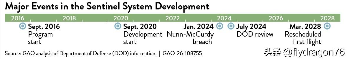 🇺🇸美国政府问责局 (GAO) 在其 2026 年 2 月 18 日发布的《国家安全评估报告》中,记录了洲际弹道导弹现代化计划中存在的系统性危机。 这涉及从 LGM-30G“民兵 III”导弹向新型“哨兵”导弹系统的过渡。 GAO-26-108755 号文件强调,“哨兵”导弹计划旨在取代服役 50 年的“民兵 III”导弹系统,但该计划的进度严重滞后数年,且成本增长远超预期。 具体而言,该计划在 2024 年就已超出其单位成本阈值。 据估计,该计划的总成本约为 1410 亿美元。然而,最终成本水平很可能大幅增加。 此外,LGM-35A“哨兵”导弹的首次试射已推迟四年,至2028年3月。 值得注意的是,该项目涉及替换美国五个州的600多个基础设施(包括发射井、指挥所和支援设施)。 美国政府问责局(GAO)报告称,成功实施该项目需要紧急修订其战略计划。报告特别强调了软件开发进度带来的风险,这可能导致成本进一步增加,并扰乱本已延期的“哨兵”导弹作战计划。 据GAO称,“哨兵”导弹的服役期可能延长至2050年,比原计划延长14年。 与此同时,“哨兵”导弹的延误迫使“民兵III”导弹的服役期也超出了原计划。 老旧的民兵III型洲际弹道导弹系统服役期延长,给后勤保障、基础设施老化以及年度飞行测试所需的零部件短缺等问题带来了日益严峻的风险,尤其是在2030年之后。 此外,在哨兵导弹部署初期,审计署建议对哨兵导弹的发射装置和软件进行详细测试,并制定风险管理计划,其中包括确保民兵III型导弹生存能力的措施。 值得注意的是,尽管LGM-35A哨兵导弹项目的预计成本已经超支,但其重组仍为解决已发现的系统性缺陷留出了有限的时间窗口。 然而,如果不及时调整管理和软硬件流程,仍然存在成本进一步增加、部署计划被打乱以及两代战略洲际弹道导弹——民兵III型和哨兵导弹——并行运行时间延长的风险。