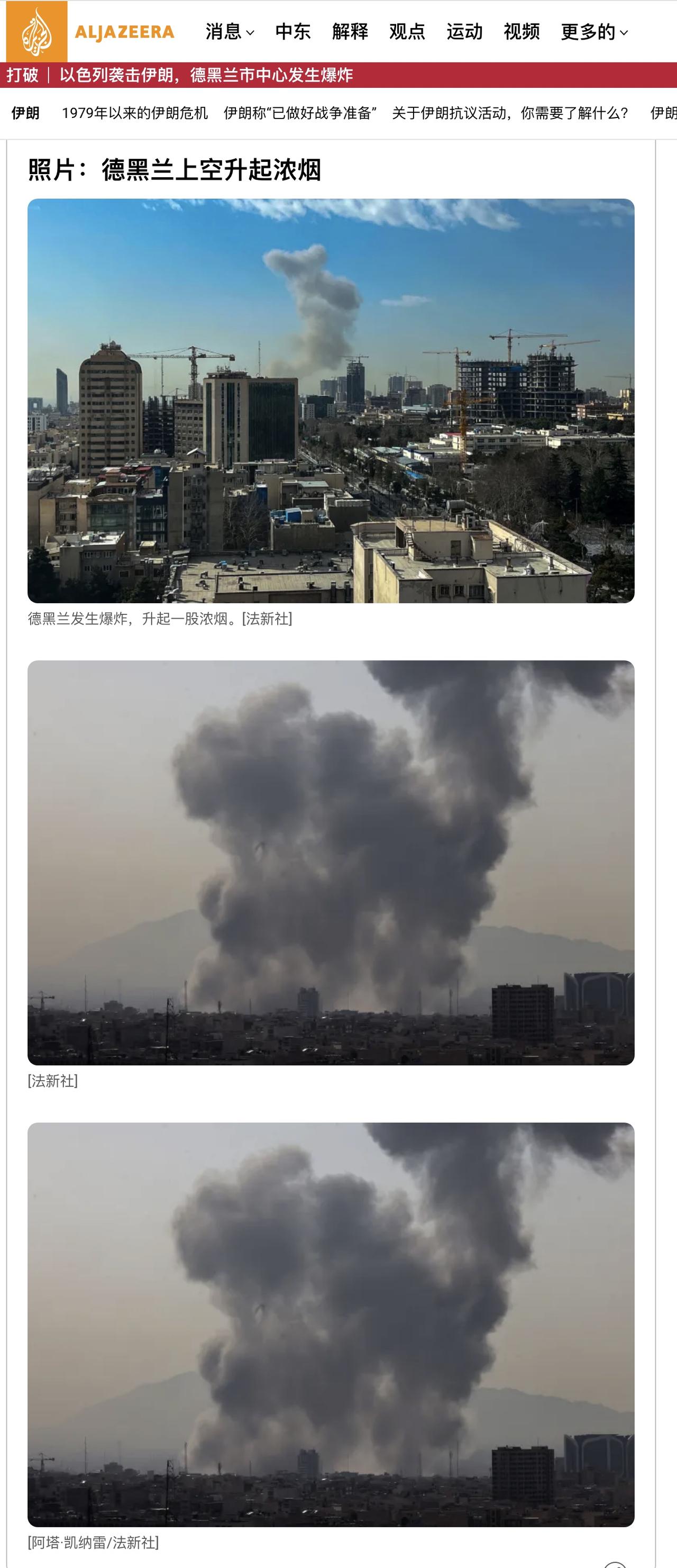 德黑兰上空升升起浓烟。图片来自半岛电视台。接下来,准备好花生小板凳,等待伊朗的反应。尤其等待伊朗内部有何变化。如果伊朗内部保持安定,它的反击一定会很好看。但是,并不排除本次冲突是“唱三簧”的可能。试图为走入死胡同的局面找到台阶,然后三方均宣布胜利。这也许就是伊朗方面对前三轮谈判感到乐观的原因。 但浑水报告更希望发生美国担心的事:持久且扩大的战争,耗尽美国军事资源。