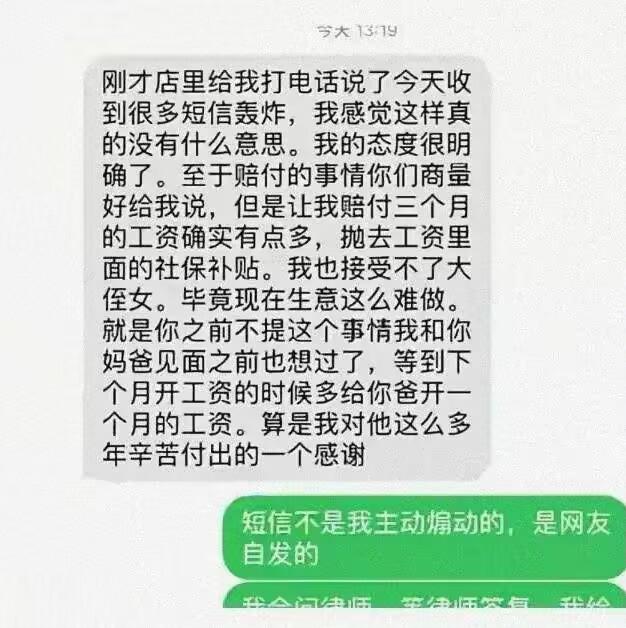 “这下肠子爽了吧” 人家给你工作三年 请俩小时假就开除,济南这家店老板算是把自己的小权发挥的淋漓尽致,同时也把自己的体面和招牌砸在地上用脚踩。 这家店是济南的绝情臭豆腐店,大年初五,一工作了三年的大叔女儿来访,想请俩小时假带爸爸去玩一玩休息休息,没想到老板一点儿不松口,说一分钟都不行,敢请就敢开除,女儿气不过就拍了个视频哭诉,没想到一下火了。 大家纷纷去店里要说法,记者打通电话却接到回复“关你什么事”,继续打另一名工作人员则说“网上都是不实信息”,被问到哪里不实,又回复“没必要告诉你”,俨然一副就算我错了你也不能把我怎么样的姿态。 这下网友更炸锅了,也有以前的员工爆这家店的黑料,请假就被骂,奶奶去世想回家出殡被老板问“怎么不提前请假”,拖欠工资等等,而又被爆出,开头的大叔是核心做菜师傅,老实巴交的,已经连轴转了好几天,春节假期期间就休息了一天,却没有给到三倍工资的待遇,社保也没交够。 于是大伙纷纷给这家店打差评,从最初 4.7 一路打到 2.1,老板见大事不妙,这才服软,起初还拉下脸跟大叔说希望能到店里,三天不来自动解除劳动关系,没想到大叔那边不领情,最后愿意静下心来赔偿。 也算是吃尽苦头了才想着改变,店关了,人走了,老板这下满意了吧。