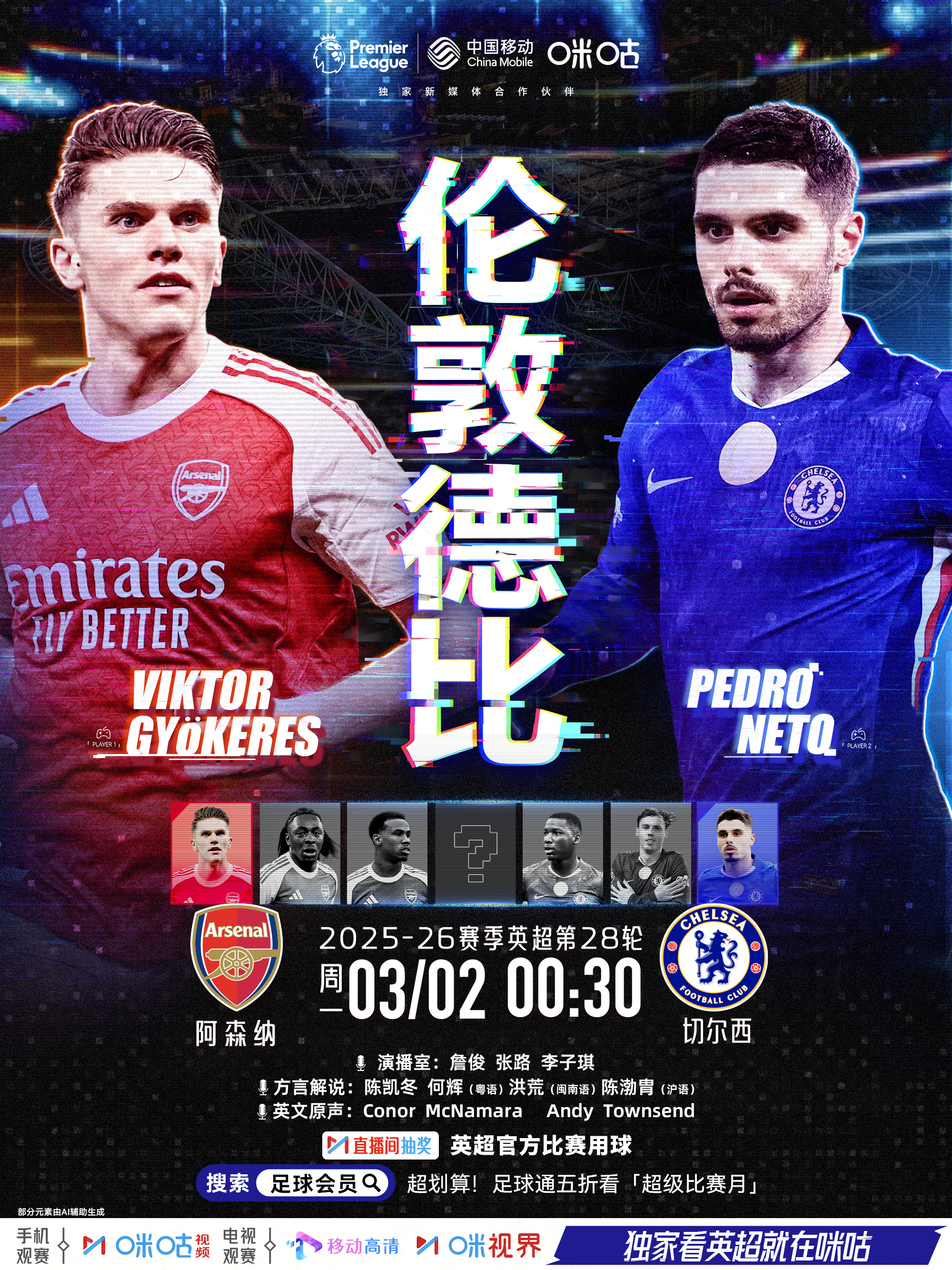 🦁 𝗣𝗿𝗲𝗺𝗶𝗲𝗿 𝗟𝗲𝗮𝗴𝘂𝗲🔴⚪ 阿森纳 𝙫𝙨 切尔西 🔵📺 《伦敦德比》🔒 3月2日 0:30 周一#独家看英超就在咪咕#📲网页链接